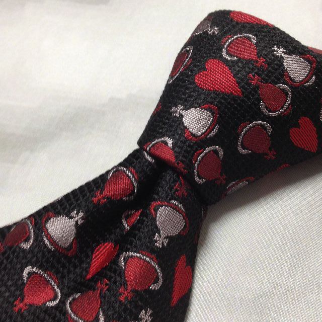 ヴィヴィアンウエストウッド Vivienne Westwood 美品 未使用品 微光沢 ネクタイ ハート柄 黒系ベース ブラック系 S-007852