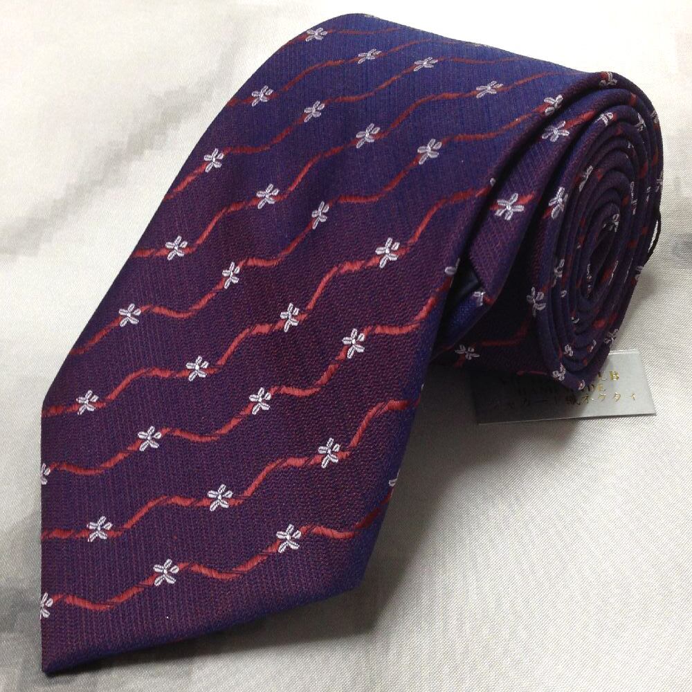 ビクトリークラブ VICTORY CLUB 美品 新品未使用タグ付 微光沢 ネクタイ小花柄 紫系 パープル系 U-007914