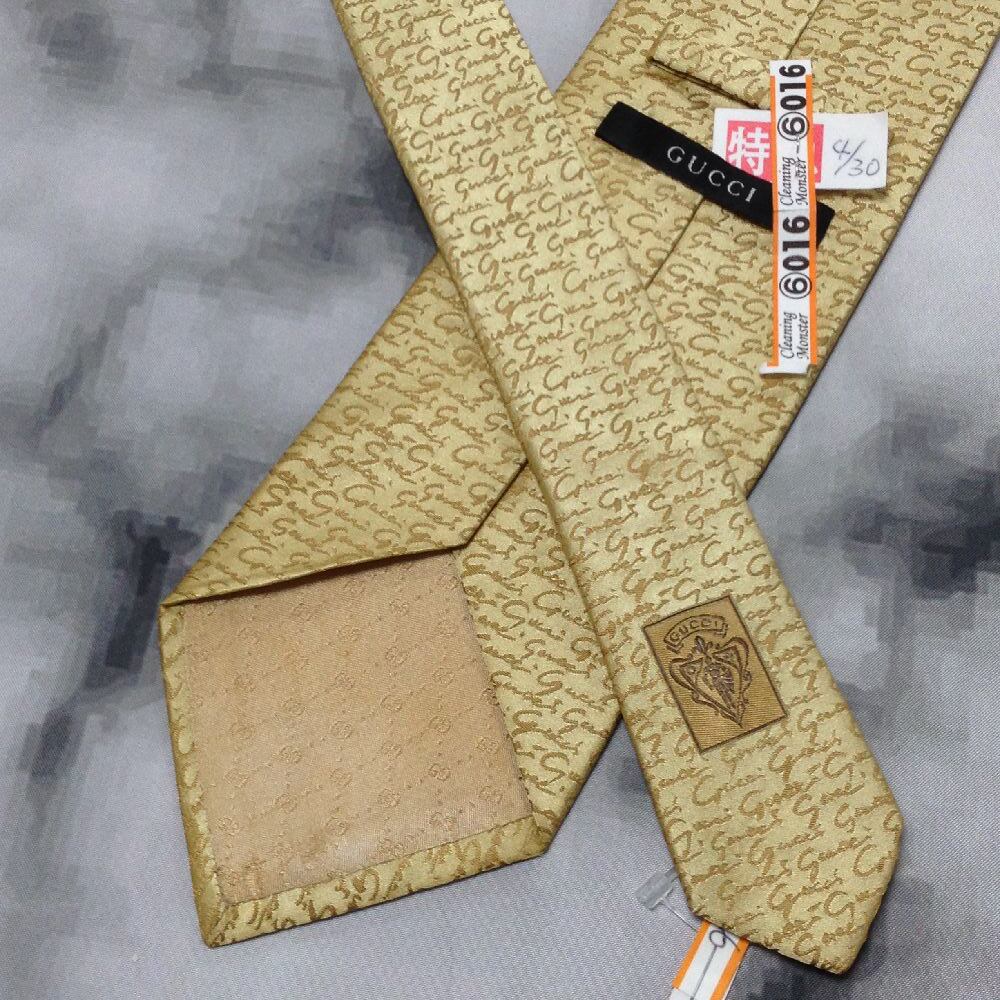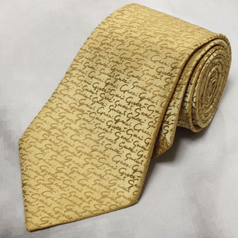 グッチ GUCCI 微光沢 ネクタイ イタリア製 シルク100% パターン柄 グレージュ系 V-007956