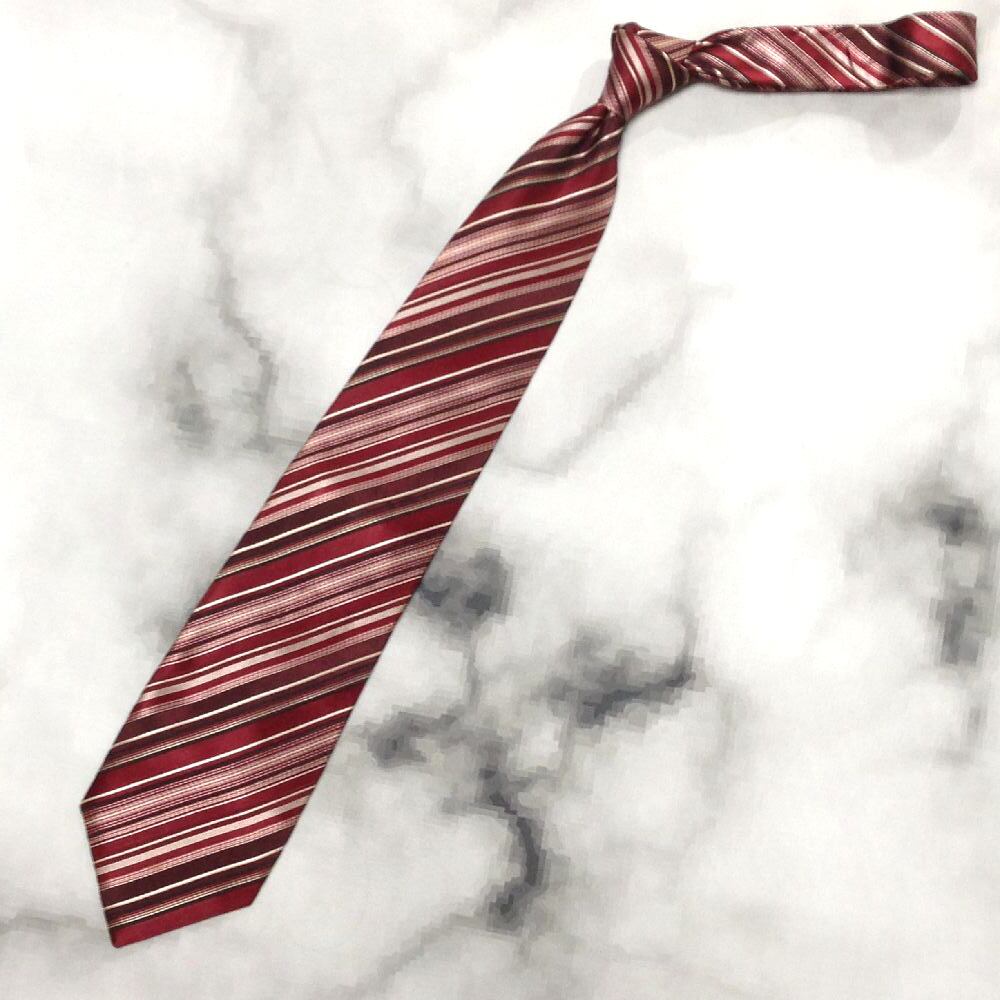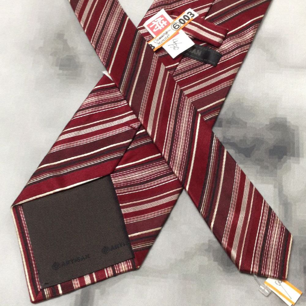 アルチザン ARTISAN 微光沢 ネクタイ シルク100% 斜めストライプ レジメンタル レッド系 赤系 V-007962