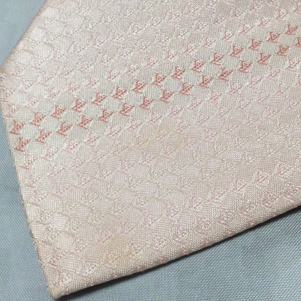 ルイ ヴィトン Louis Vuitton 微光沢 ネクタイ イタリア製 シルク100% ブランドロゴ柄 ピンク系 V-007966