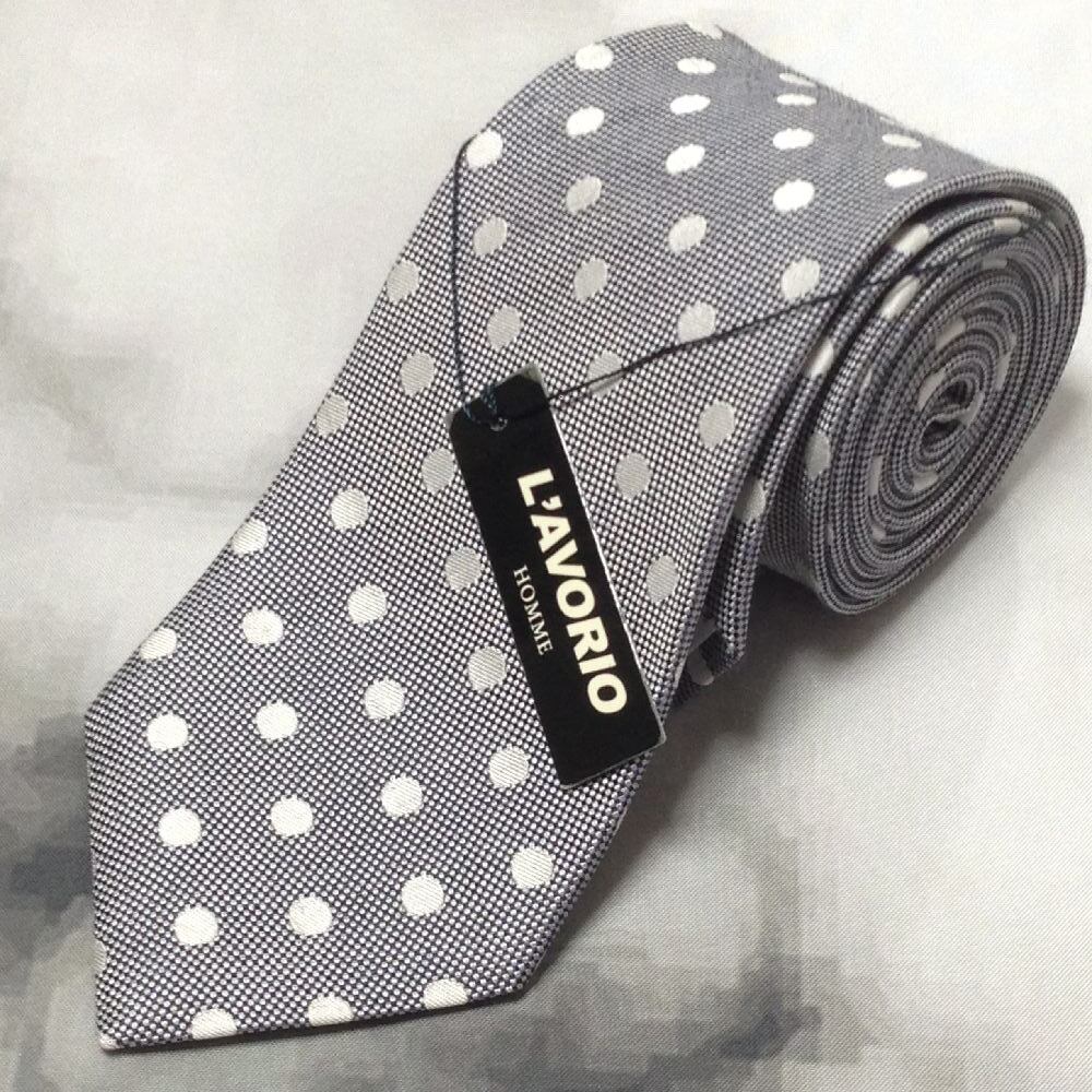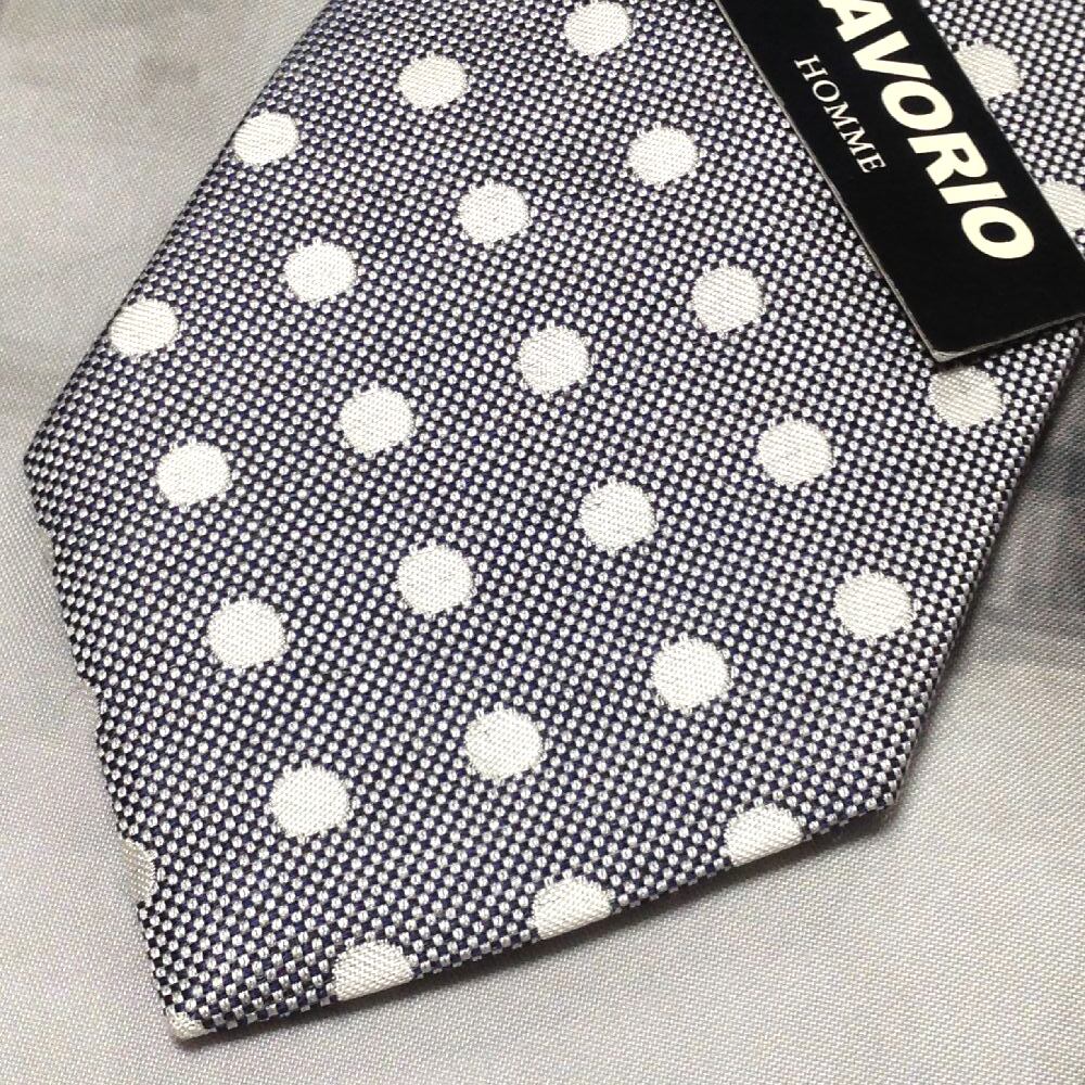 LAVORIO HOMME 美品 新品未使用タグ付 微光沢 ネクタイ 日本製 シルク 麻 ドット柄 白黒 モノクロ V-007982