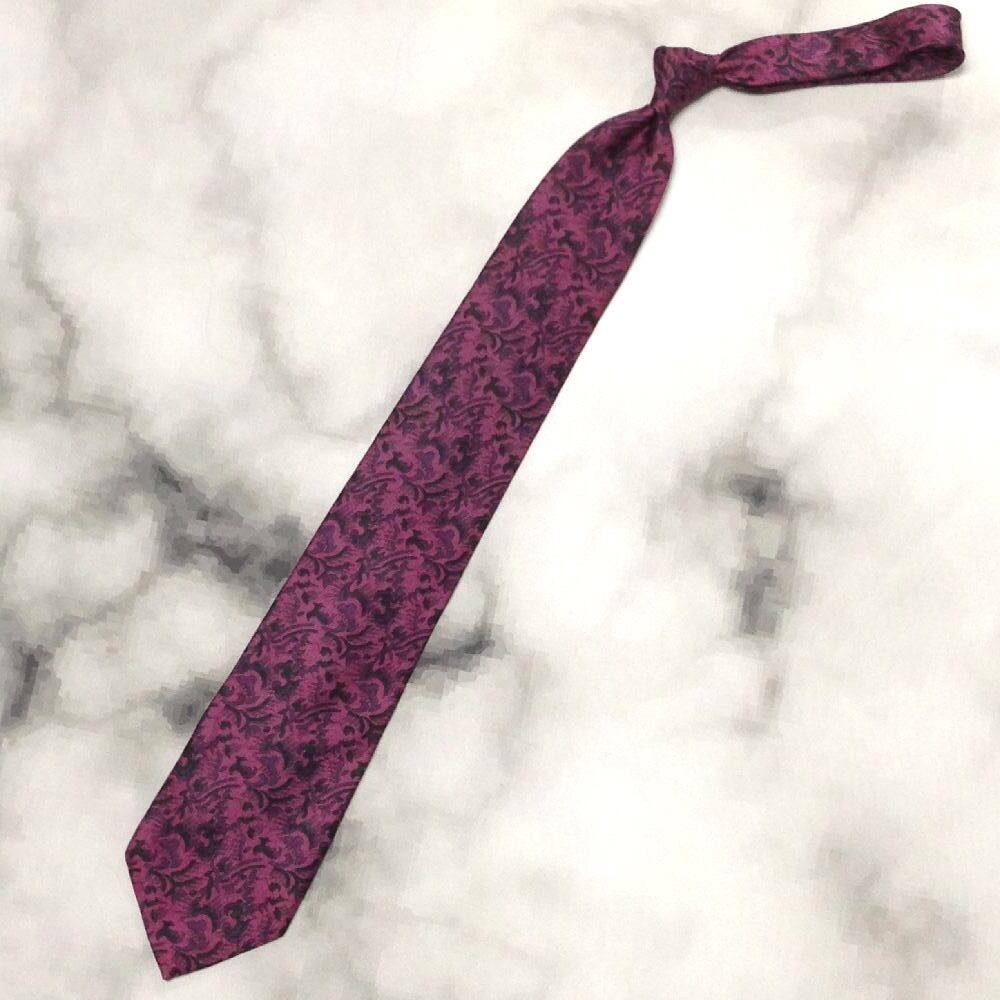 ダーバン DURBAN 良品 微光沢 ネクタイ イタリア生地 日本製 シルク100% パターン柄 紫系 パープル系 V-007990