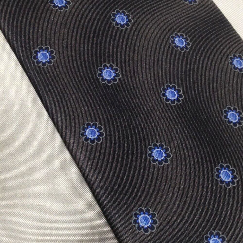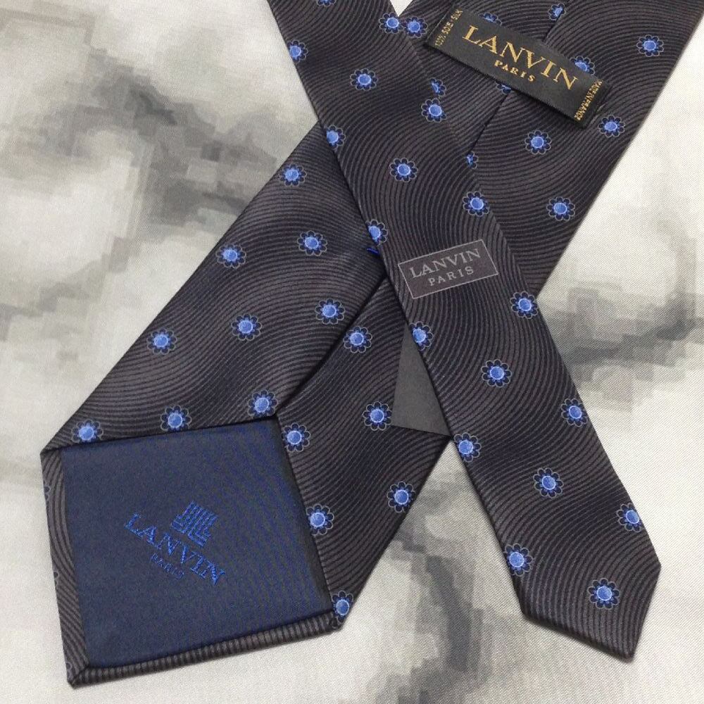 ランバン LANVIN 良品 微光沢 ネクタイ フランス製 シルク100% パターン柄 濃紺系 ネイビー系 V-007994