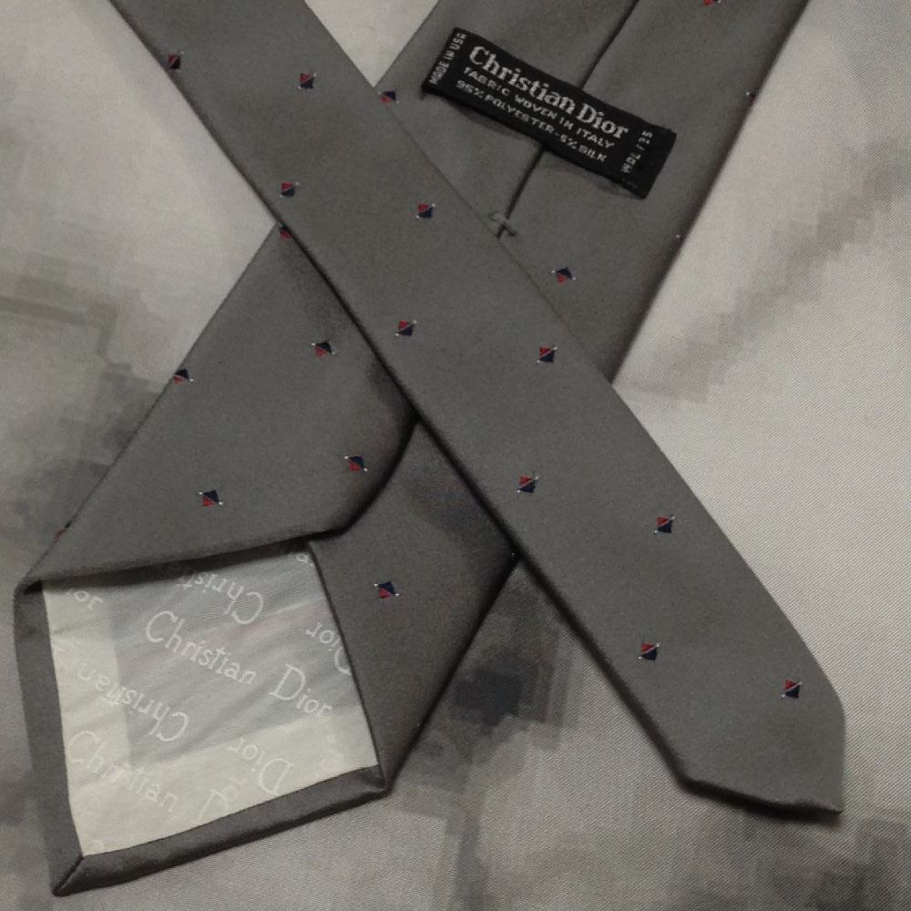 クリスチャンディオール Christian Dior 良品 微光沢 ネクタイ アメリカ製 パターン柄 グレー系 V-007995