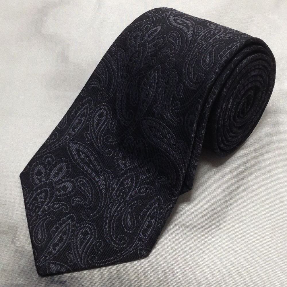 ファットーリ Fattori 良品 微光沢 ネクタイ イタリア製 シルク100% ペイズリー柄 黒系 ブラック系 V-007999