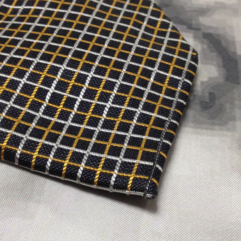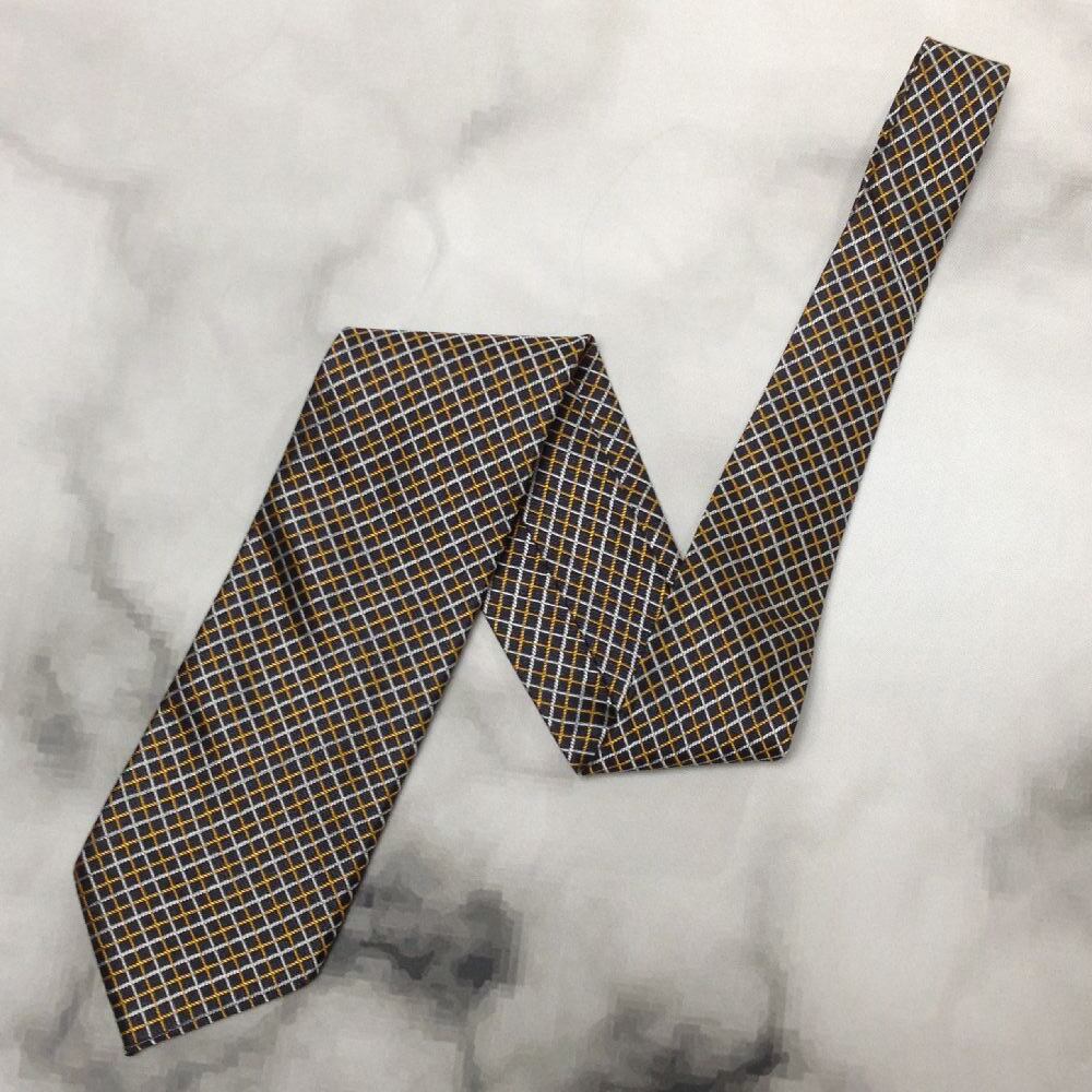 ミチコロンドンコシノ MICHIKO LONDON KOSHINO 良品 微光沢 ネクタイ シルク100% 格子柄 濃紺系 ネイビー系 V-008005