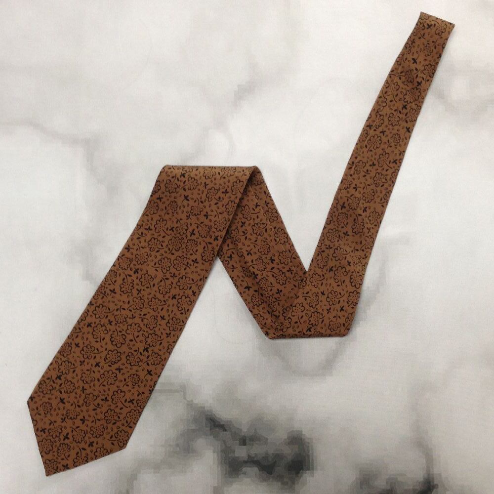 ユキコハナイ Yukiko Hanai 微光沢 ネクタイ シルク100% 小花柄 茶系 ブラウン系 V-008010