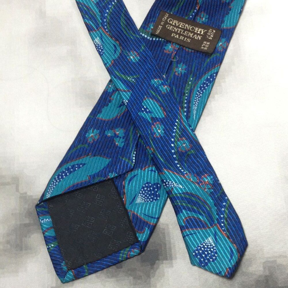 ジバンシイ GIVENCHY 良品 微光沢 ネクタイ イタリア製 シルク100% 花柄 青系 ブルー系 V-008011