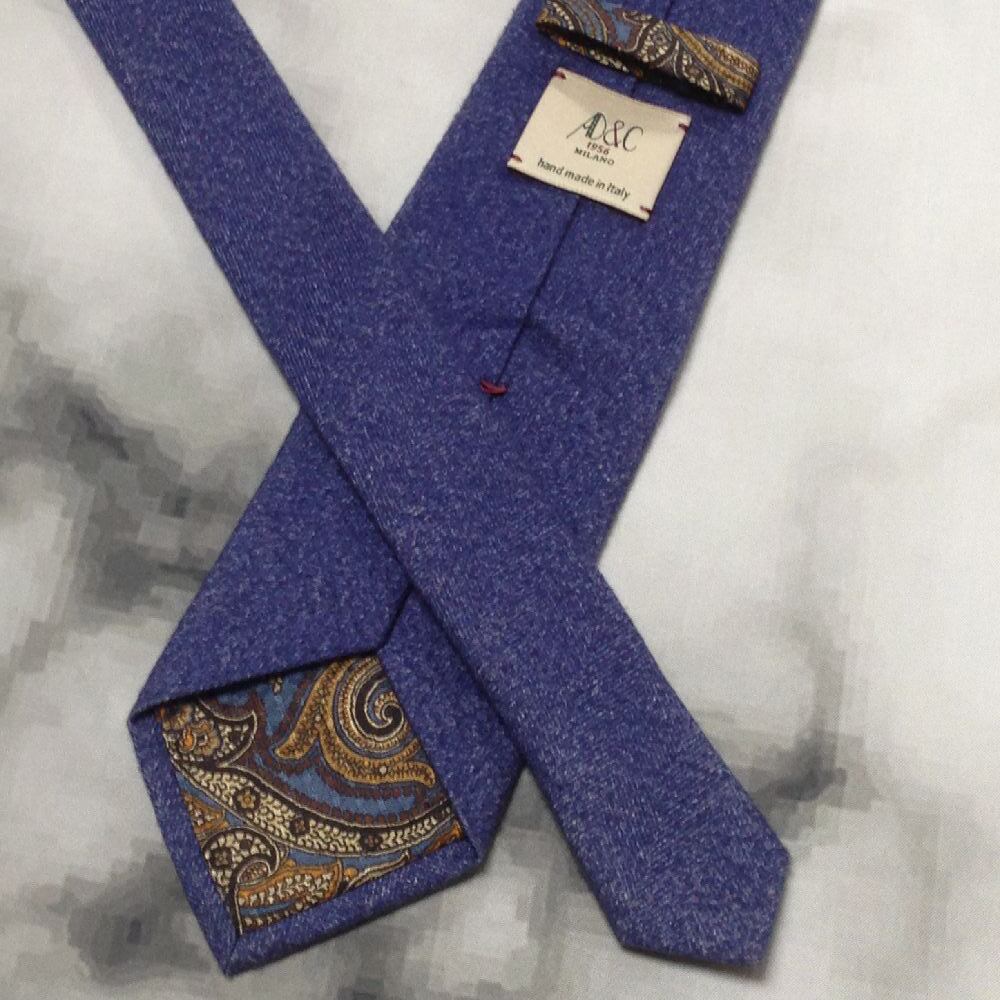 アーデーアンドシー AD&C 良品 ネクタイ イタリア製 綿 シルク ペイズリー柄 青系 ブルー系 V-008012
