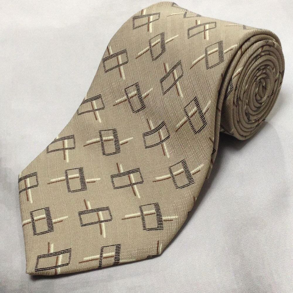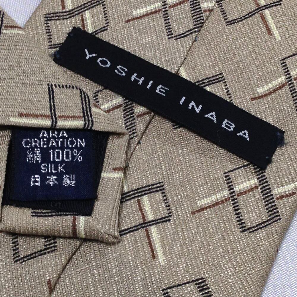 ヨシエイナバ yoshie inaba 美品 微光沢 ネクタイ 日本製 シルク100% パターン柄 グレージュ系 V-008027