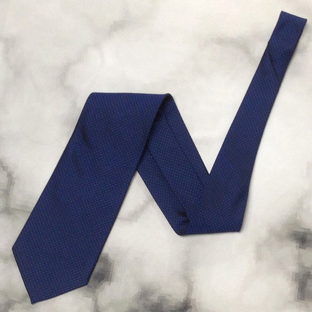 ROYAL CRICKET 美品 微光沢 ネクタイ 日本製 シルク100% パターン柄 濃紺系 ネイビー系 V-008029