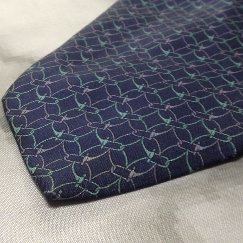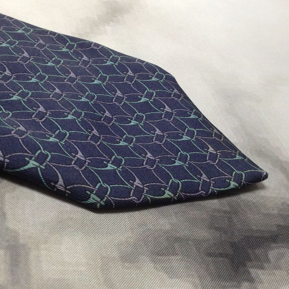 グッチ GUCCI クリーニング済 微光沢 ネクタイ イタリア製 シルク100% パターン柄 濃紺系 ネイビー系 V-008035