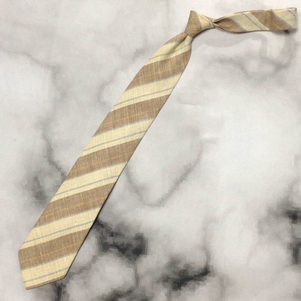 ダーバン DURBAN クリーニング済 微光沢 ネクタイ 麻100% 斜めストライプ レジメンタル ミックス V-008038