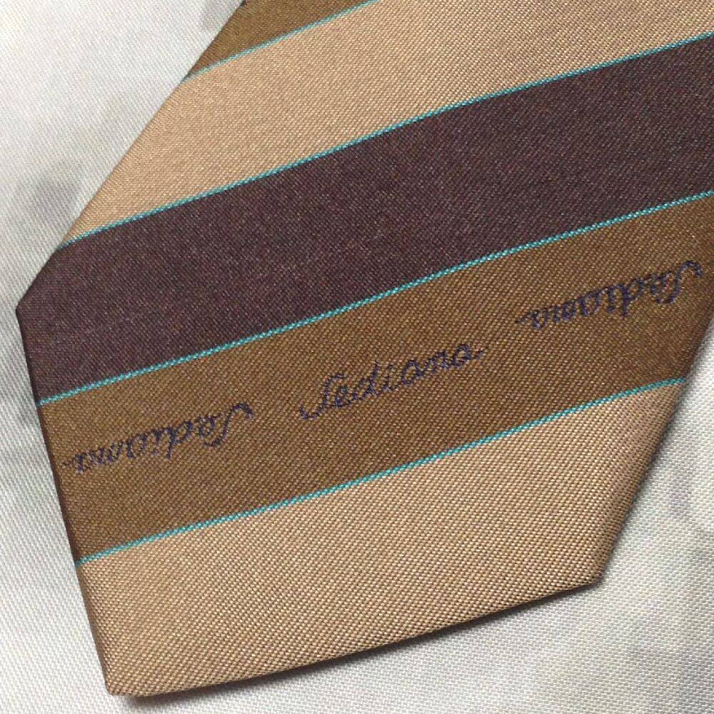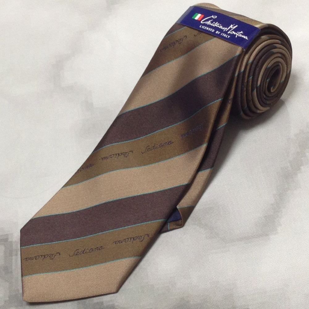 Christian Montana SEDIANA 美品 新品未使用タグ付 微光沢 ネクタイ 斜めストライプ 茶系 ブラウン系 W-008062