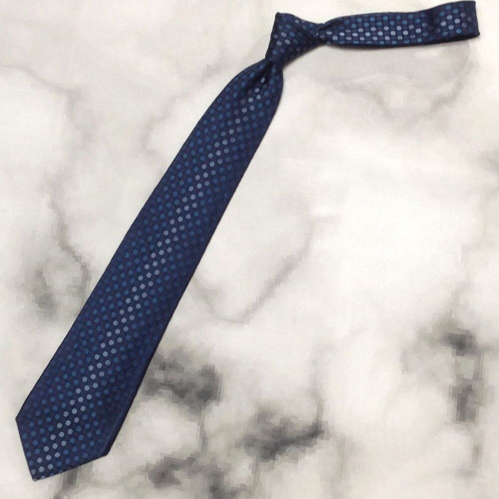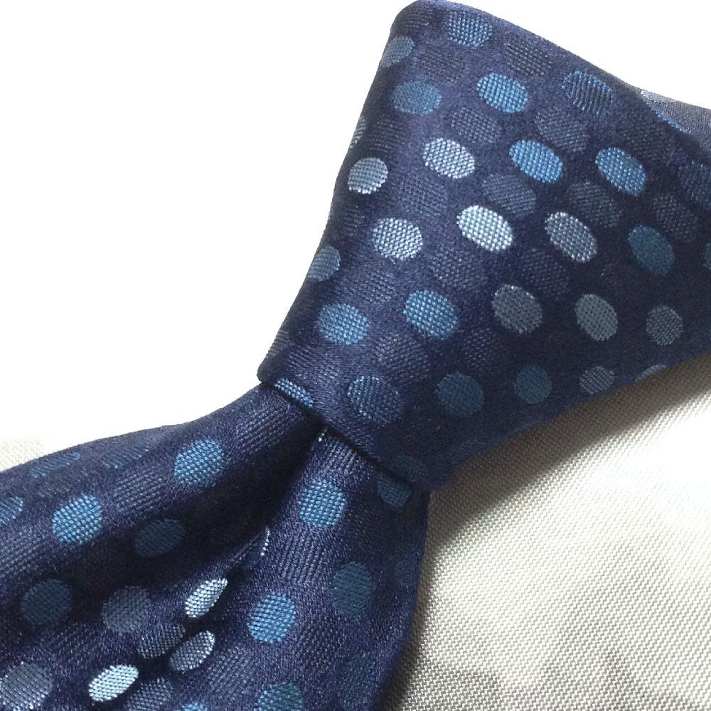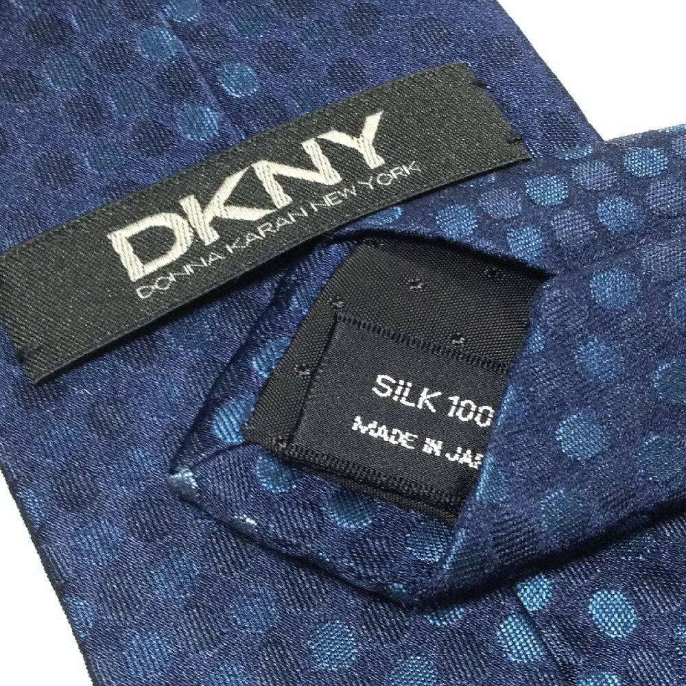 ダナ キャラン ニューヨーク DKNY 良品 微光沢 ネクタイ 日本製 シルク100% ドット柄 濃紺系 ネイビー系 W-008087