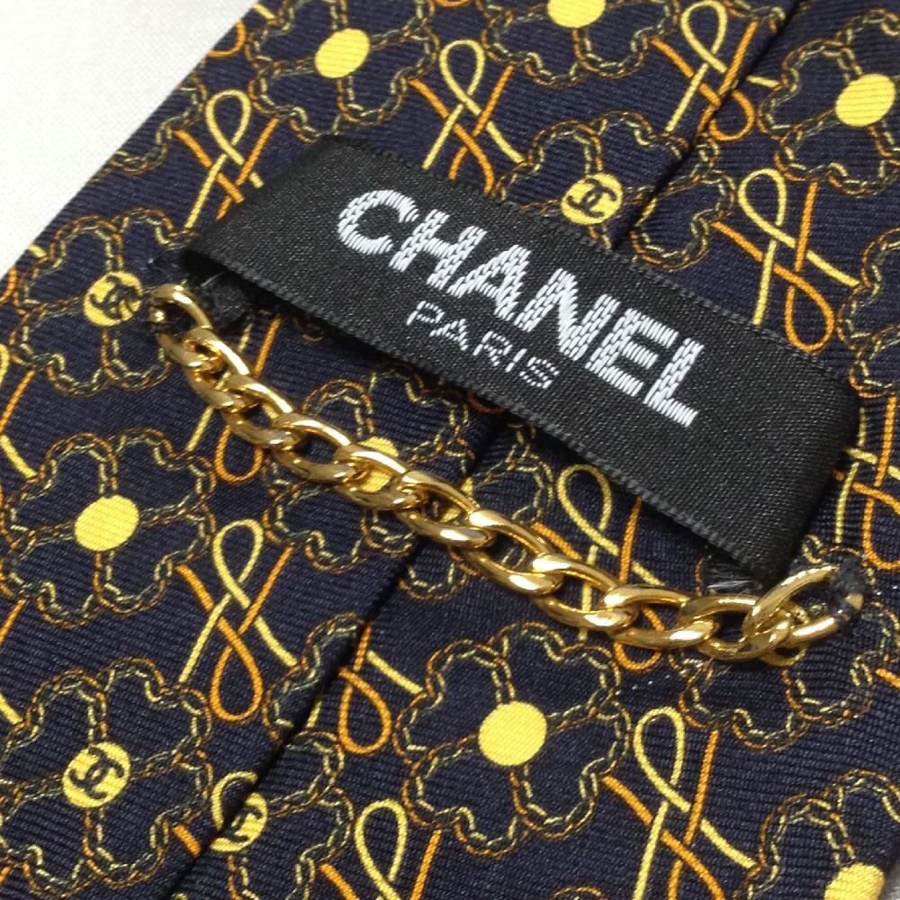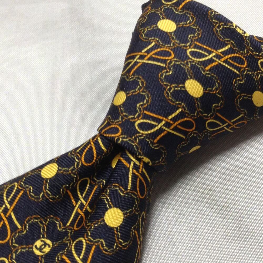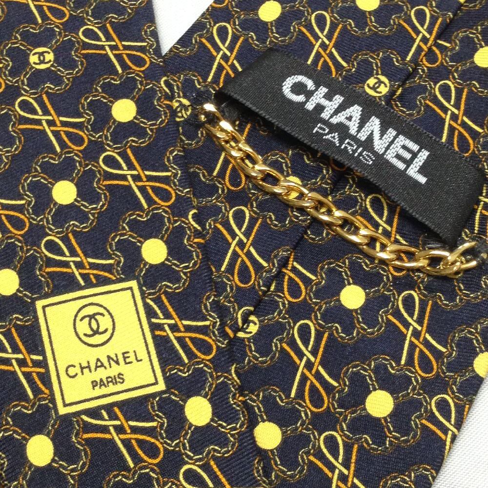 シャネル CHANEL 美品 微光沢 ネクタイ イタリア製 シルク100% ブランドマーク柄 ミックス W-008091