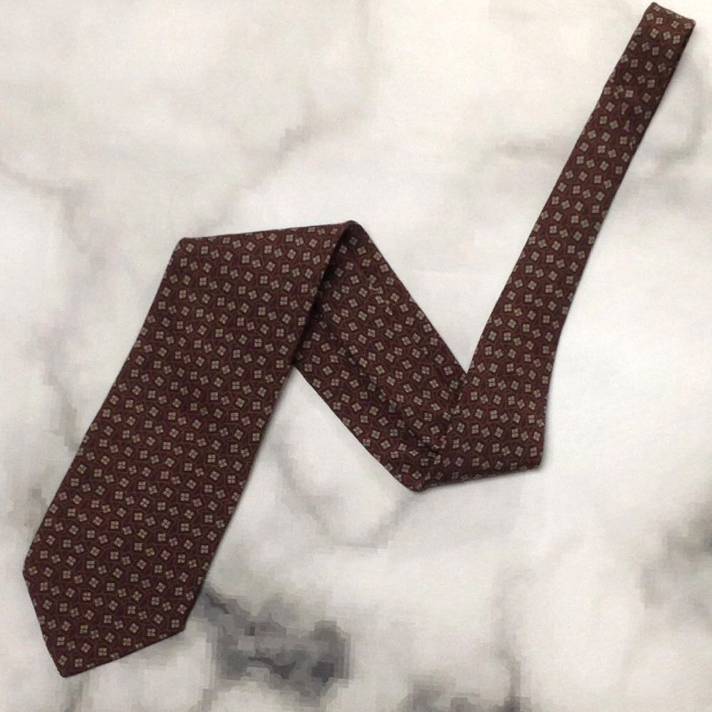 ニノセルッティ NINO CERRUTI 良品 微光沢 ネクタイ シルク100% パターン柄 ワインレッド系 赤系 W-008093
