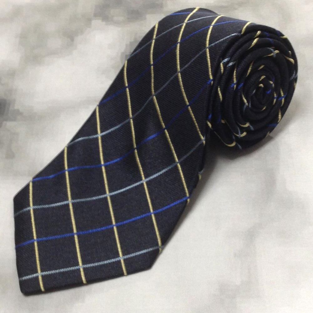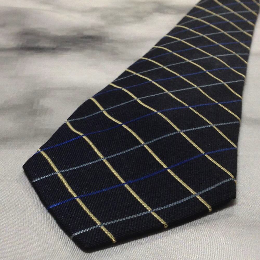 タケオキクチ TAKEO KIKUCHI TK 良品 微光沢 ネクタイ シルク100% 格子柄 濃紺系 ネイビー系 W-008102