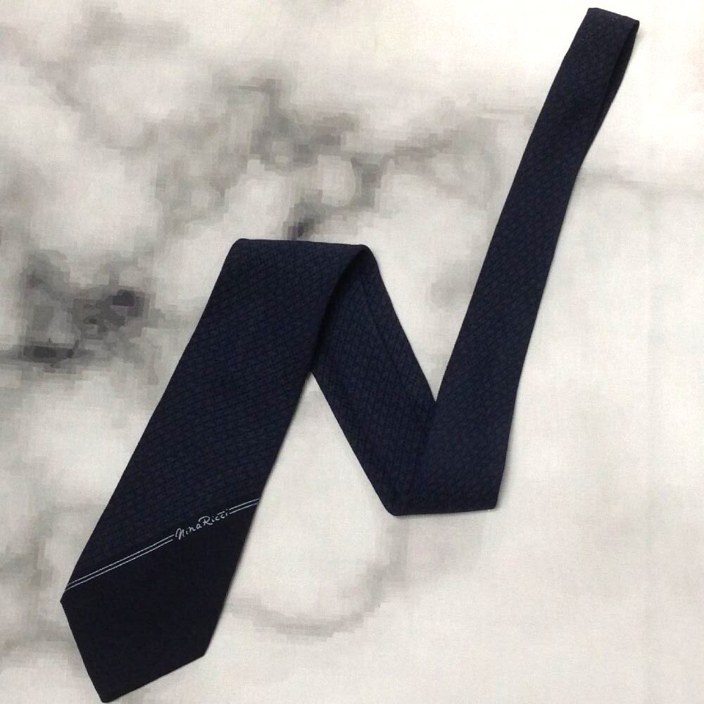 ニナリッチ NINA RICCI 美品 微光沢 ネクタイ シルク 斜めストライプ レジメンタル 濃紺系 ネイビー系 W-008109