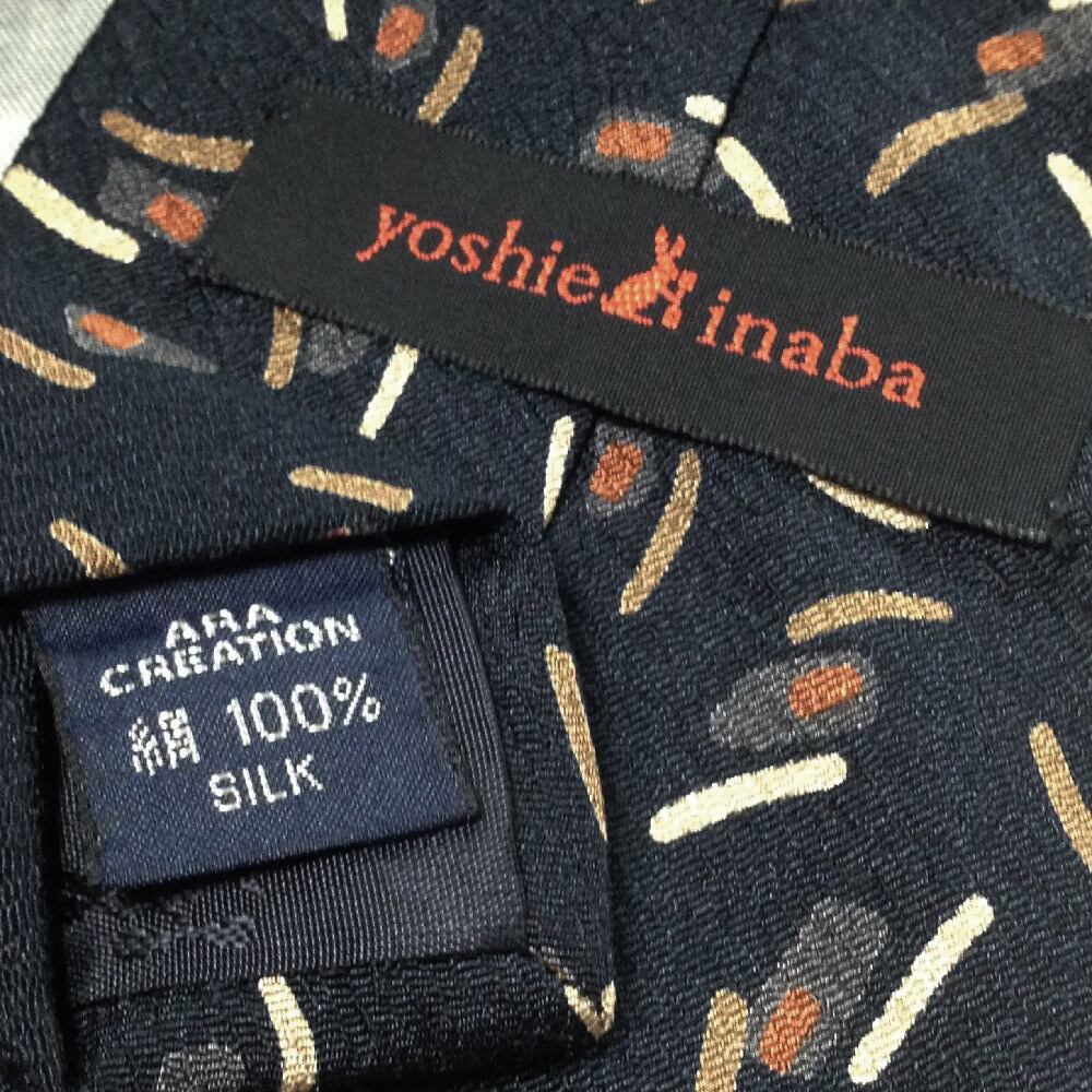 ヨシエイナバ yoshie inaba 美品 未使用品 微光沢 ネクタイ シルク100% パターン柄 濃紺系 ネイビー系 W-008110