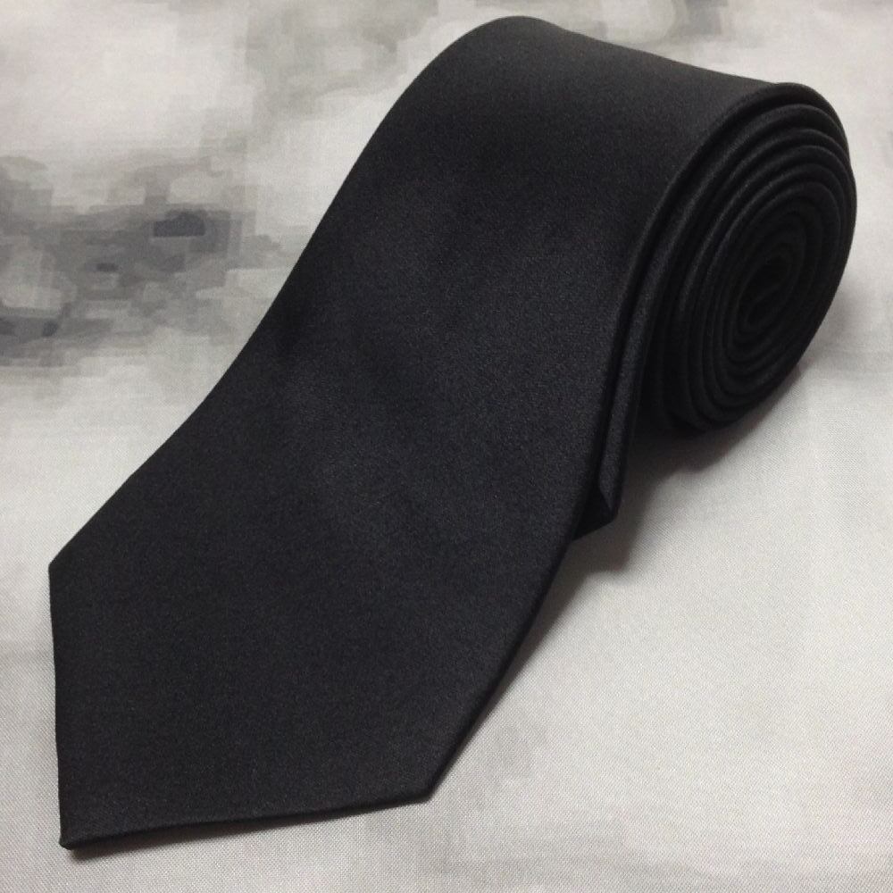 EVEN 美品 新品未使用タグ付 微光沢 ネクタイ シルク100% 無地 冠婚葬祭 礼装 黒系 ブラック系 X-008135