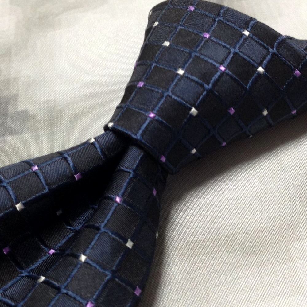 ミチコロンドンコシノ MICHIKO LONDON KOSHINO 美品 新品未使用タグ付 微光沢 ネクタイ 濃紺系 ネイビー系 X-008141