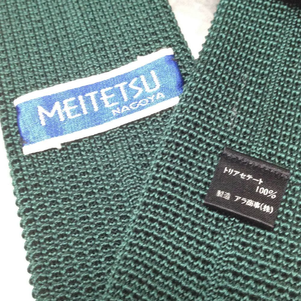 名鉄 名古屋 MEITETSU NAGOYA 名古屋鉄道 メイテツ 美品 微光沢 ネクタイ ニット スクエア タイ 緑系 グリーン系 X-008159