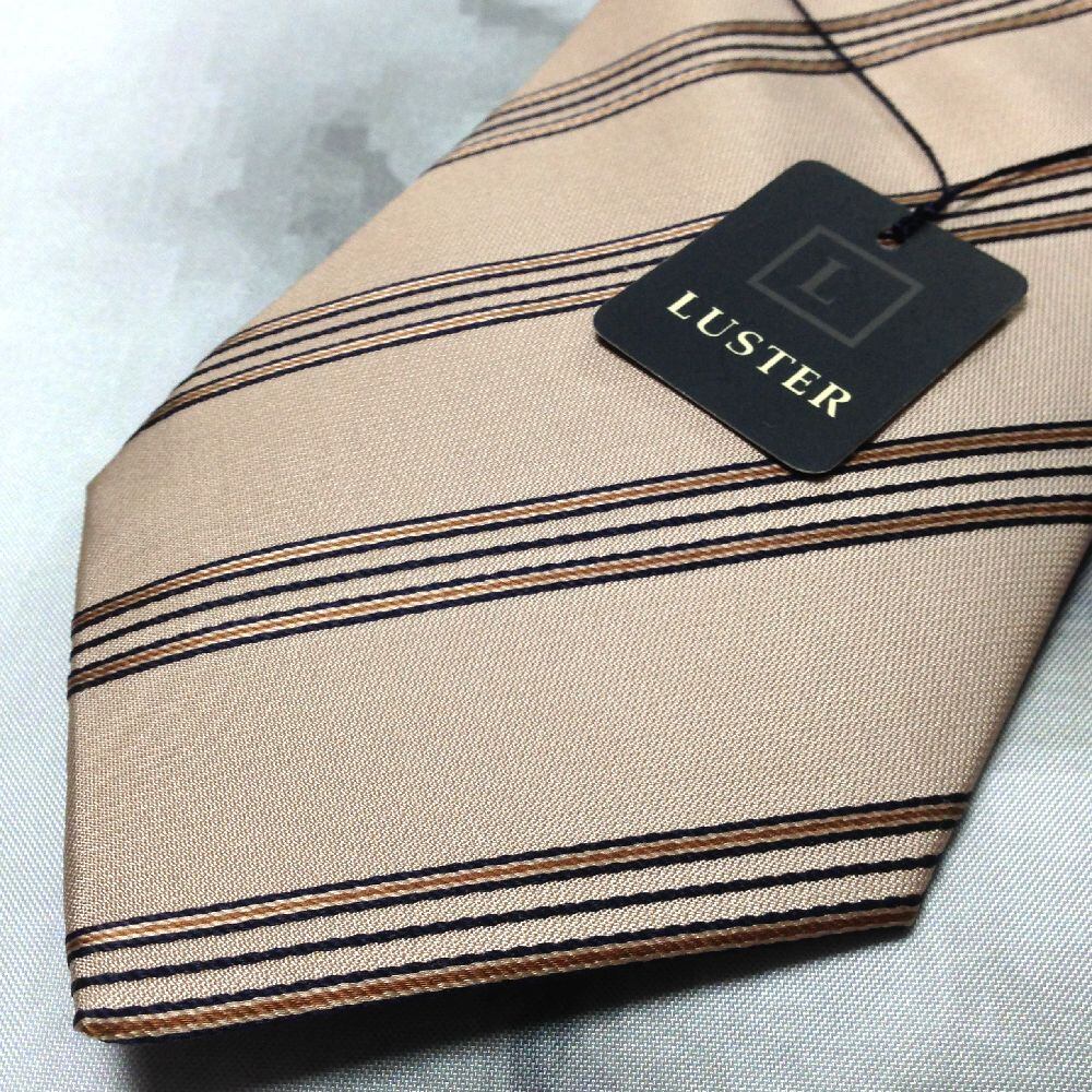 LUSTER 美品 新品未使用タグ付 微光沢 ネクタイ シルク100% 斜めストライプ レジメンタル ミックス X-008161