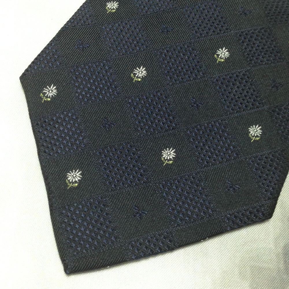 ハナエ モリ HANAE MORI 美品 微光沢 ネクタイ 日本製 シルク100% 小花柄 濃紺系 ネイビー系 X-008163