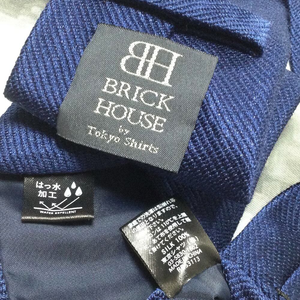 ブリックハウス BRICK HOUSE 良品 微光沢 ネクタイ シルク100% 無地 撥水加工 濃紺系 ネイビー系 Y-008172