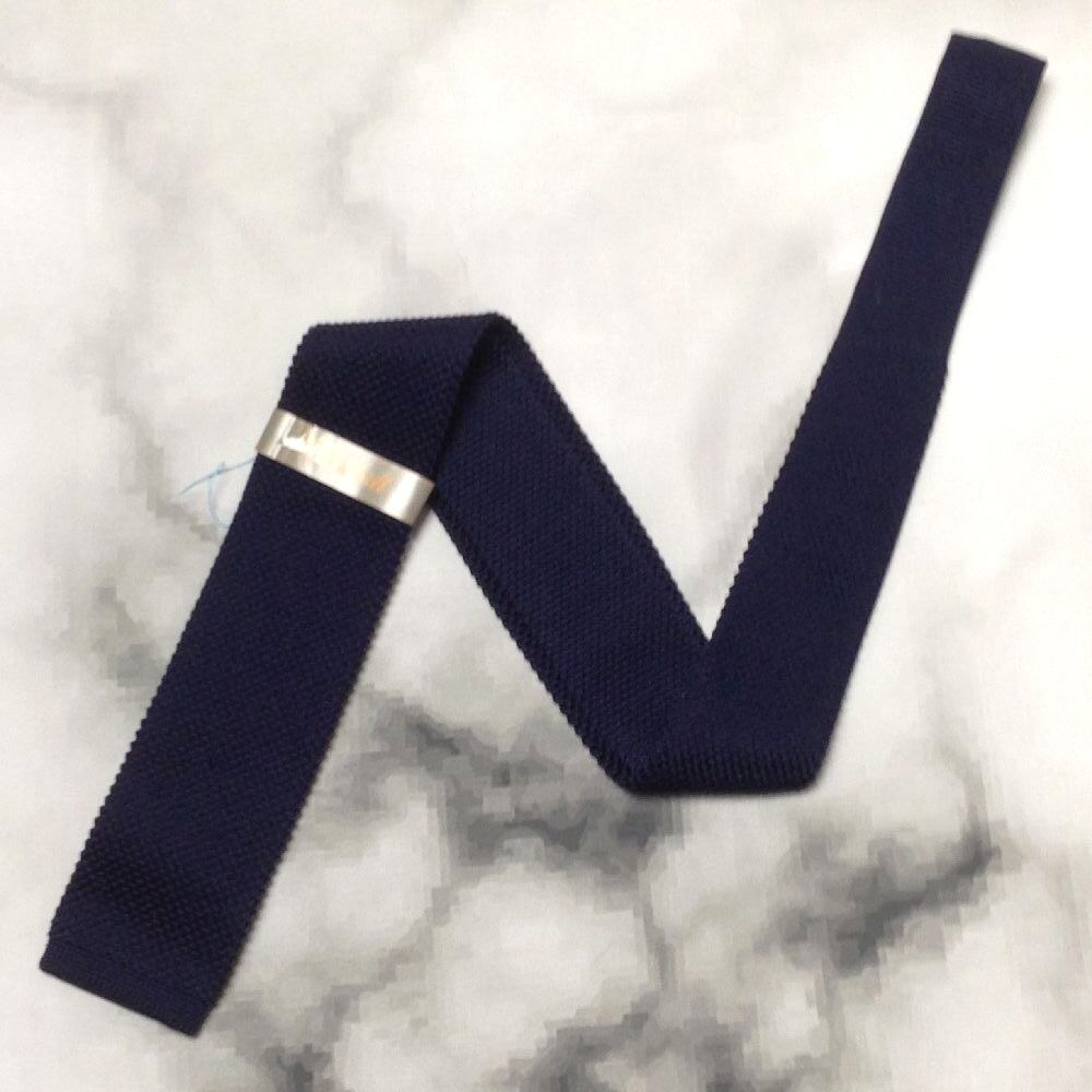Raru ball 美品 新品未使用タグ付 微光沢 ネクタイ 日本製 ニット スクエア タイ 無地 濃紺系 ネイビー系 Y-008209