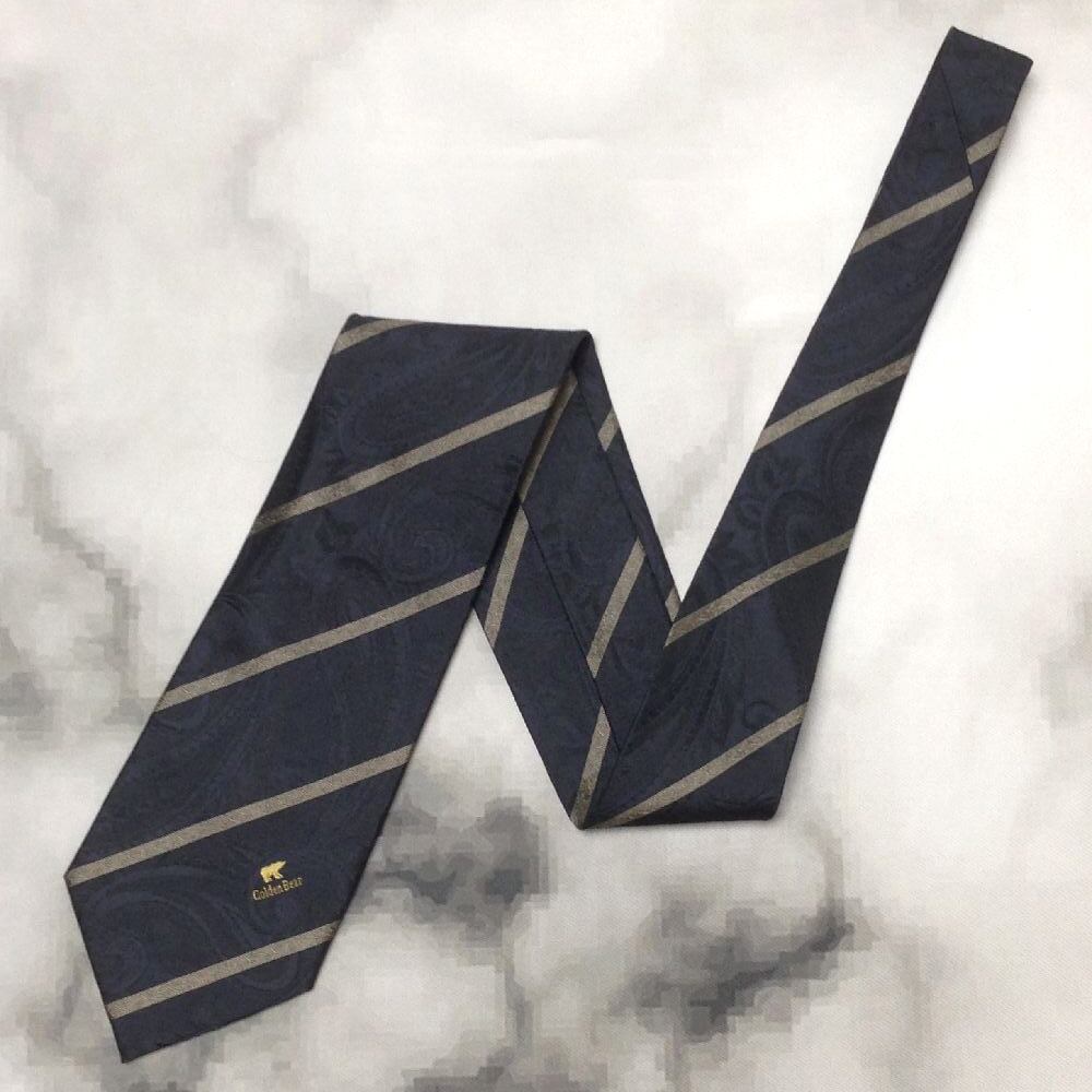 ゴールデンベアー GoldenBear 美品 未使用品 微光沢 ネクタイ シャドーペイズリー柄 濃紺系 ネイビー系 Y-008218