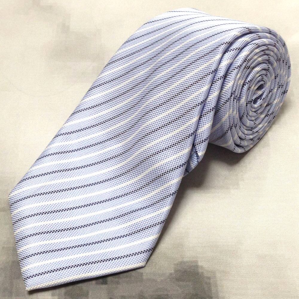 シンプルフレーズクラバット SIMPLE PHRASE CRAVAT 美品 未使用品 微光沢 ネクタイ ストライプ 水色系 ライトブルー系 Y-008219