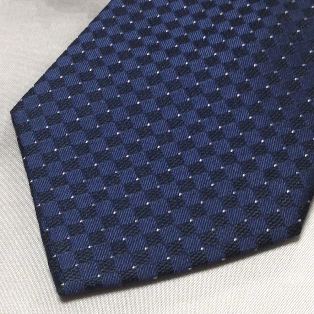 コムサイズム COMME CA ISM 美品 未使用品 微光沢 ネクタイ シルク100% パターン柄 濃紺系 ネイビー系 Y-008224