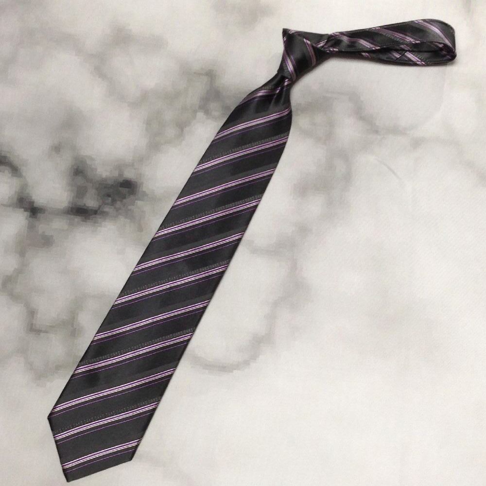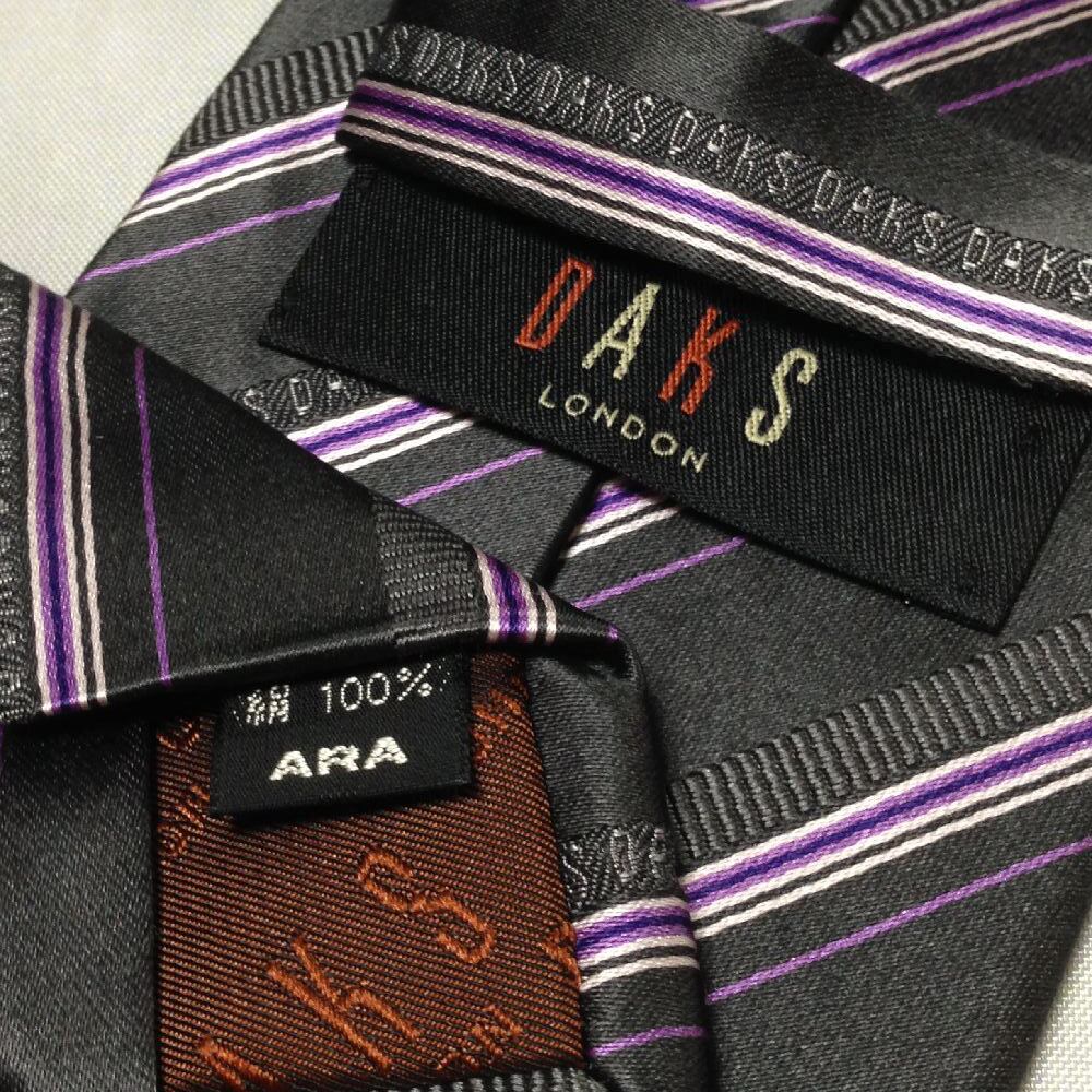 ダックス daks 微光沢 ネクタイ シルク100% 斜めストライプ レジメンタル 黒系 ブラック系 Z-008231
