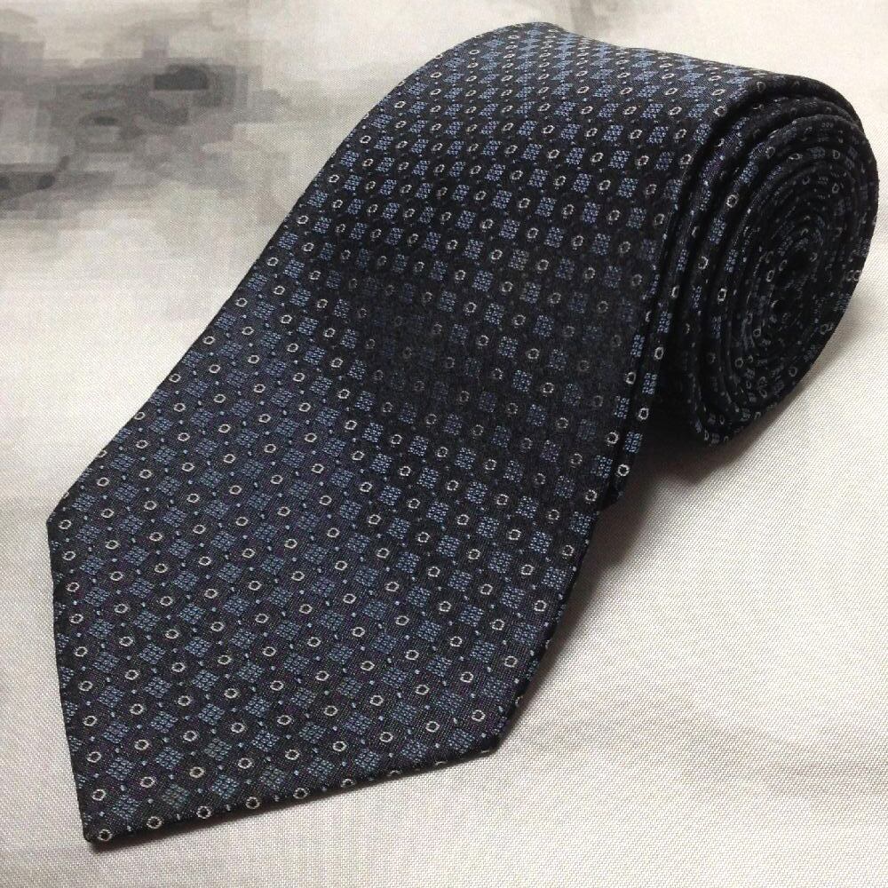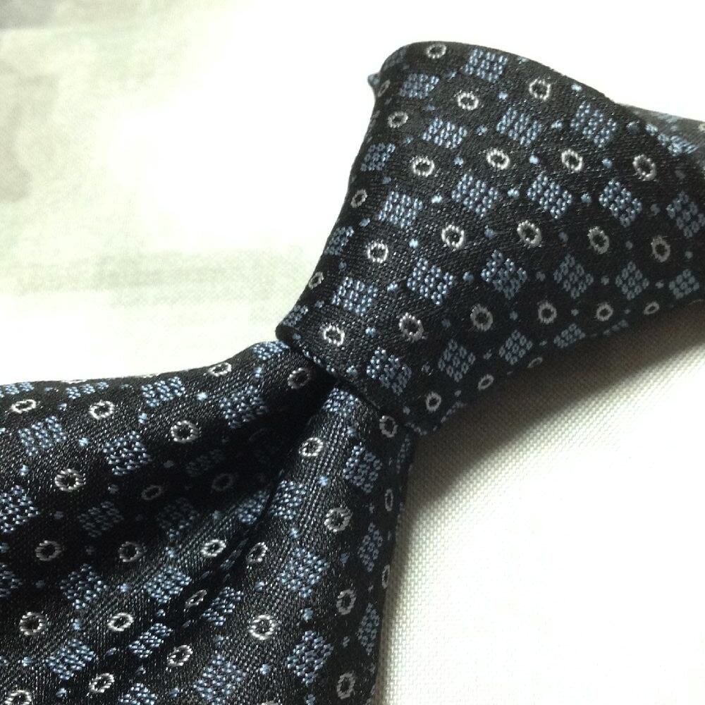 ダーバン DURBAN 微光沢 ネクタイ イタリア生地 日本製 シルク100% パターン柄 黒系 ブラック系 Z-008240