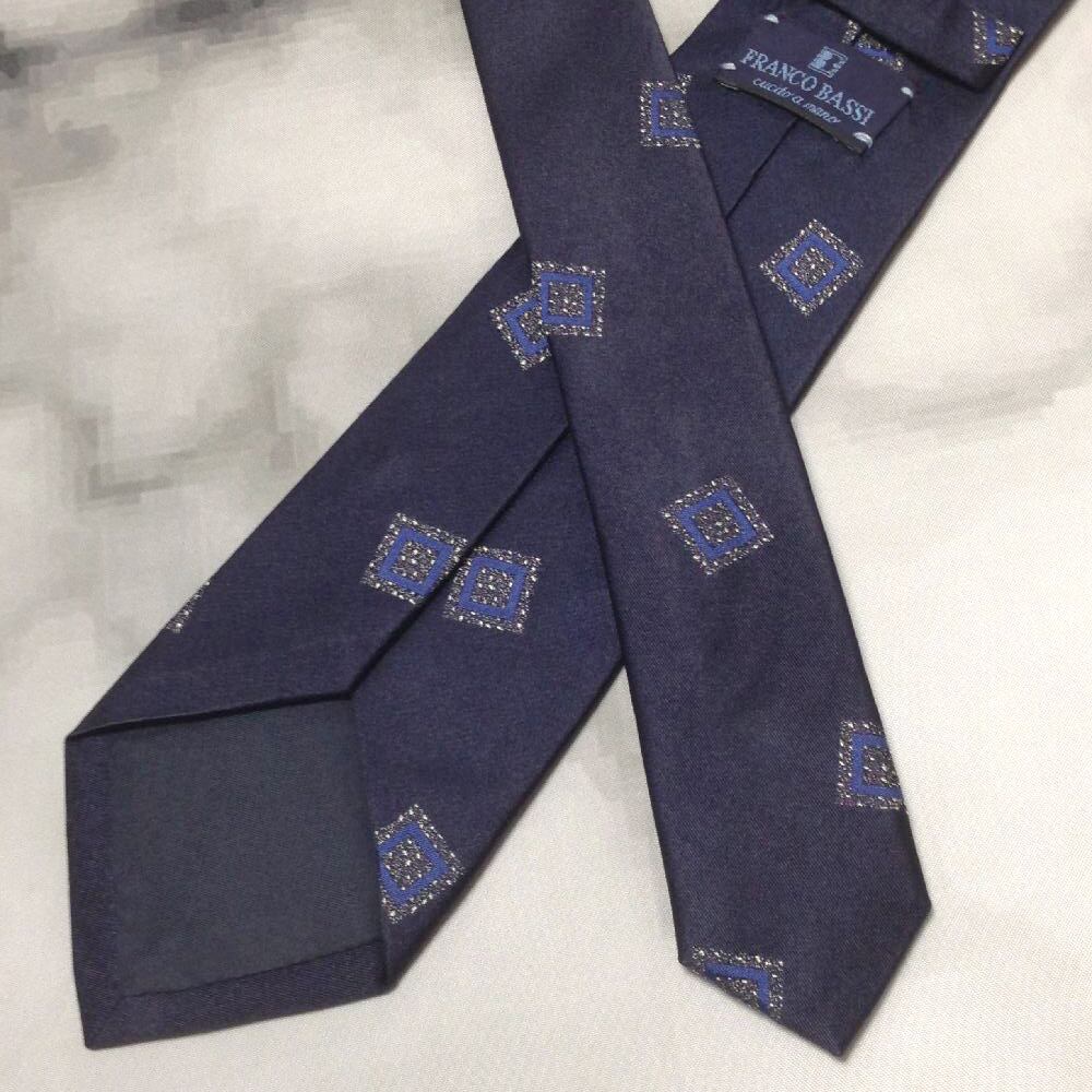フランコバッシ FRANCO BASSI 良品 微光沢 ネクタイ イタリア製 シルク100% パターン柄 濃紺系 ネイビー系 Z-008243