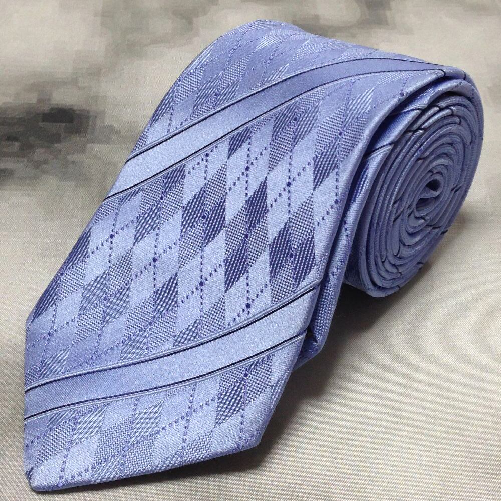 タケオキクチ TAKEO KIKUCHI 微光沢 ネクタイ 日本製 シルク100% パターン柄 水色系 ライトブルー系 Z-008250