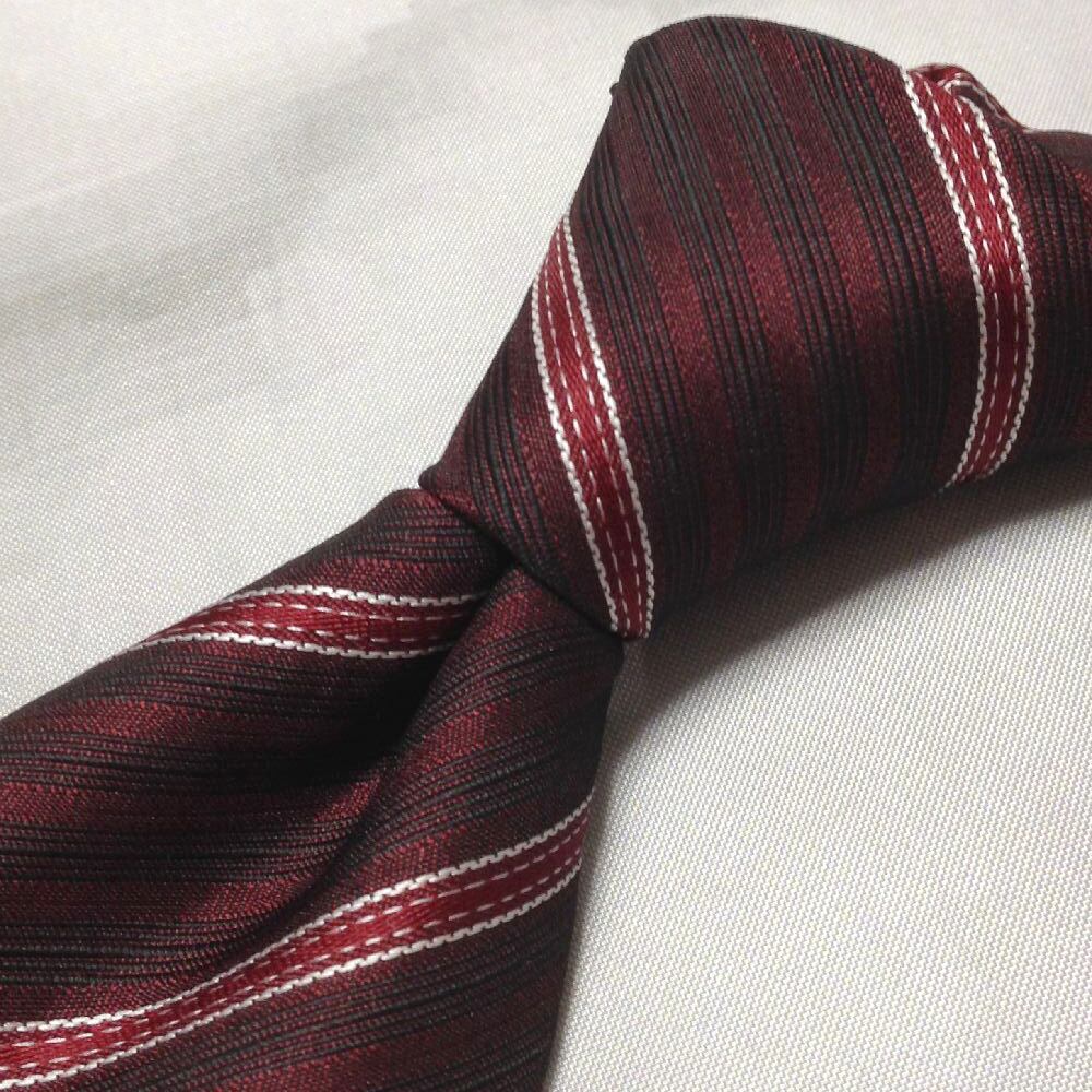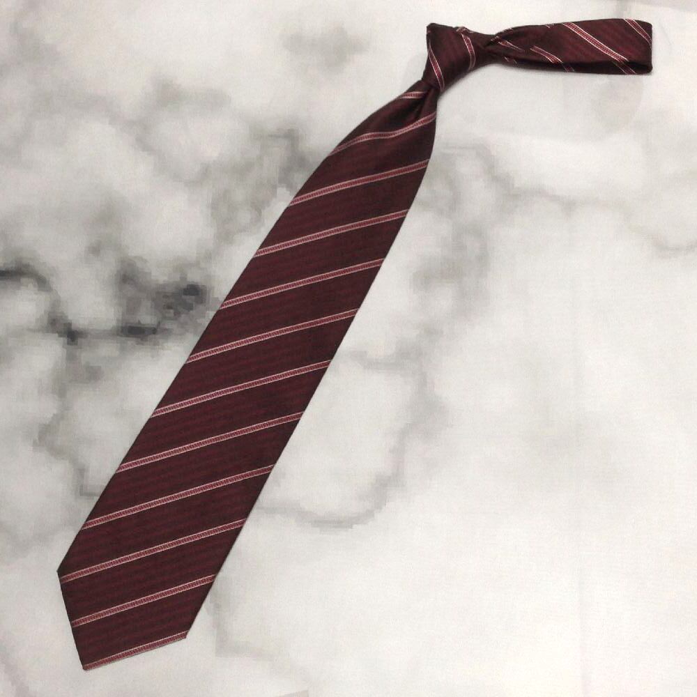 ジョルジオアルマーニ GIORGIO ARMANI 良品 微光沢 ネクタイ 斜めストライプ ワインレッド系 赤系 Z-008252