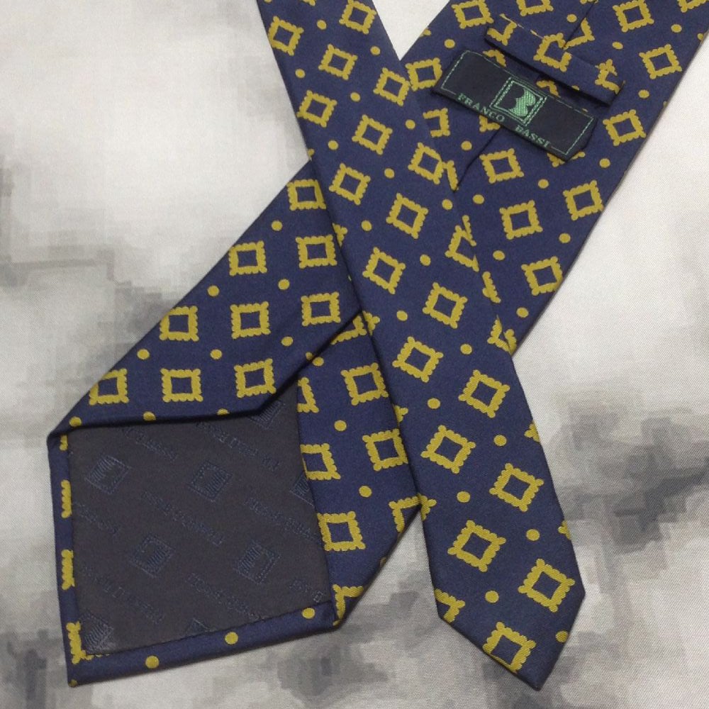 フランコバッシ FRANCO BASSI 微光沢 ネクタイ イタリア製 シルク100% パターン柄 濃紺系 ネイビー系 Z-008265