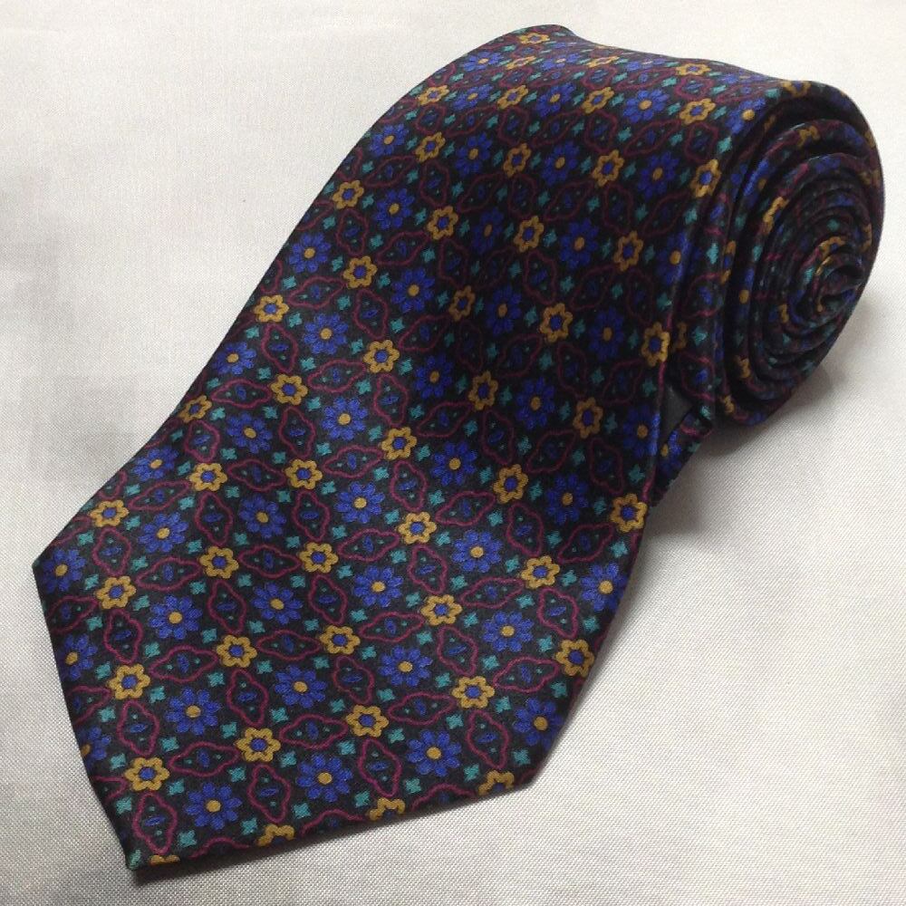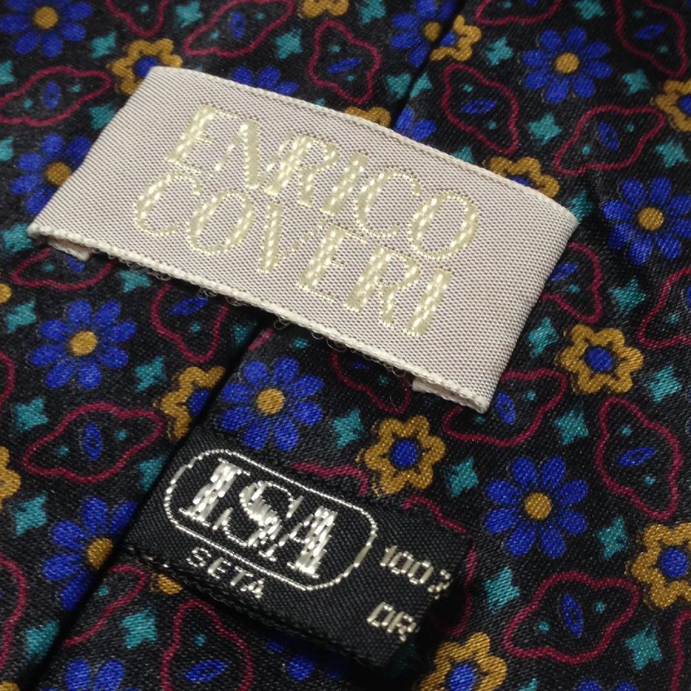 エンリココベリ ENRICO COVERI 美品 未使用品 微光沢 ネクタイ シルク100% 小花柄 濃紺系 ネイビー系 Z-008271