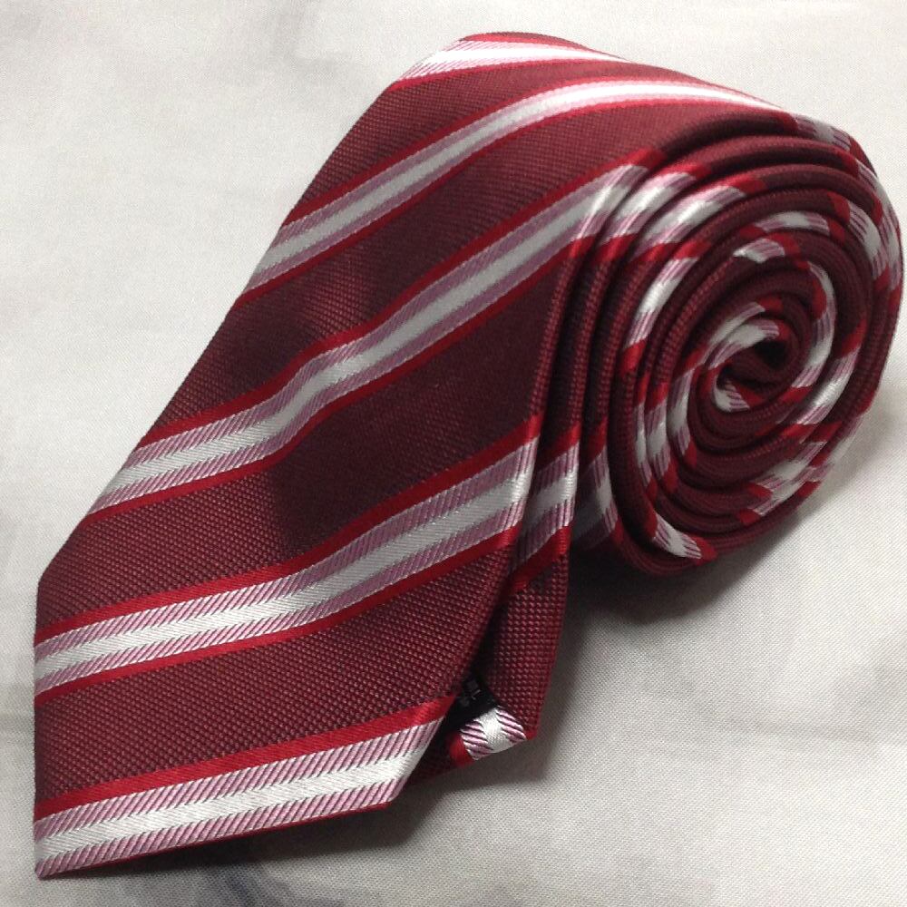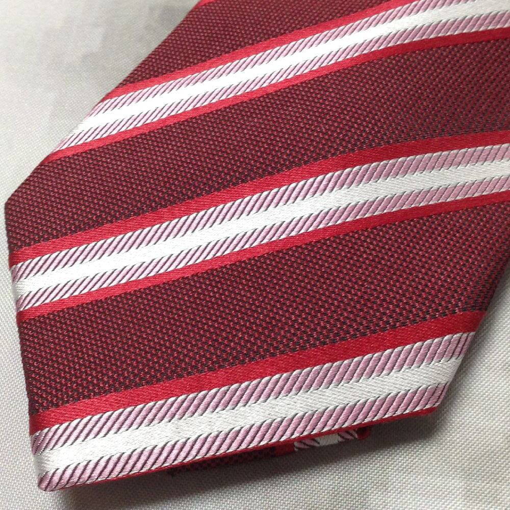 タカキュー TAKA-Q 美品 微光沢 ネクタイ シルク100% 斜めストライプ レジメンタル ワインレッド系 赤系 Z-008293