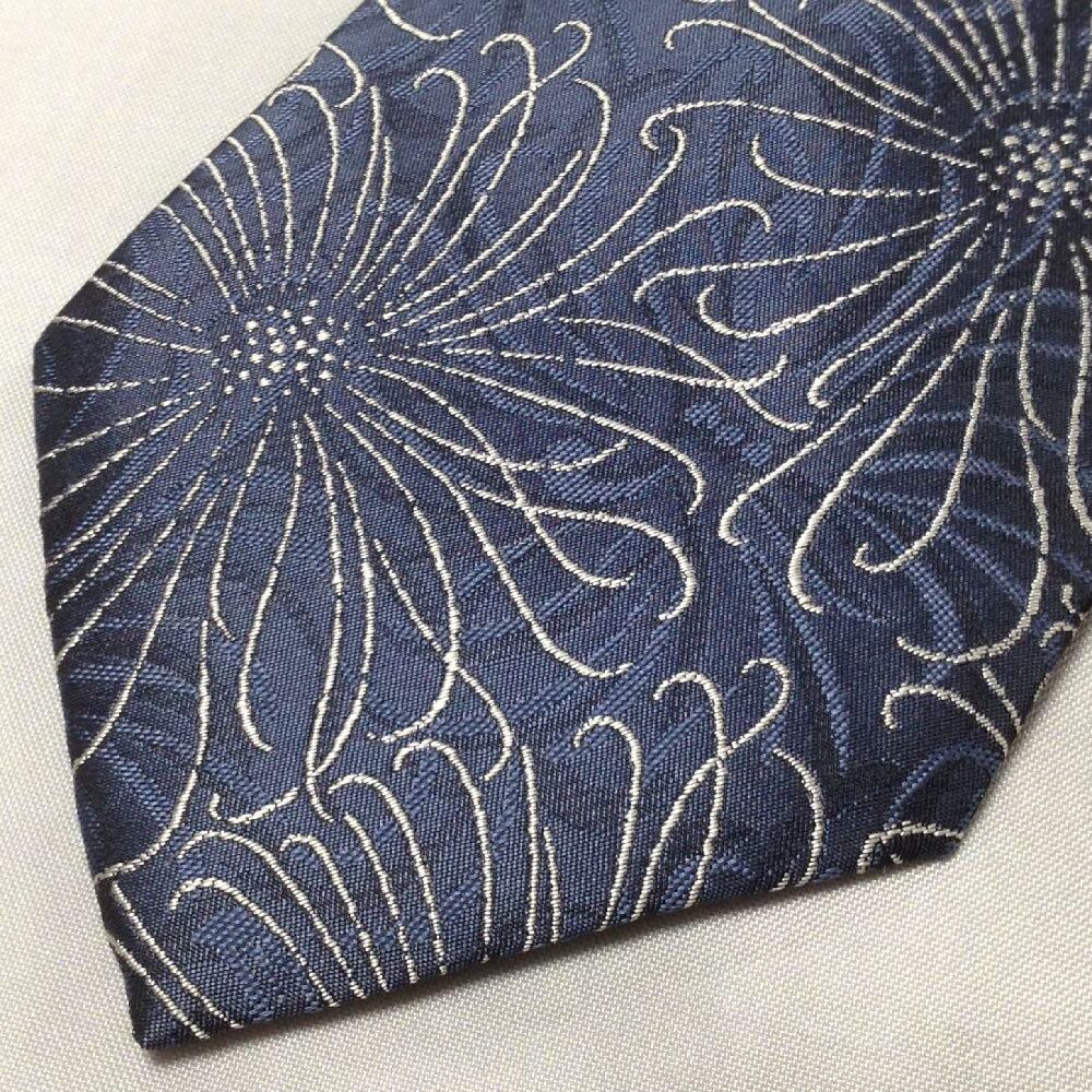 君島 キミジマ KIMIJIMA 美品 微光沢 ネクタイ 日本製 シルク100% 花柄 濃紺系 ネイビー系 A-008295