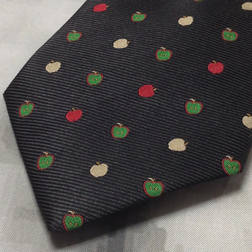 ブリックハウス BRICK HOUSE 良品 微光沢 ネクタイ シルク リンゴ柄 林檎柄 果物 フルーツ 黒系 ブラック系 A-008301
