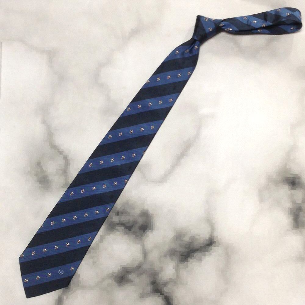 ダンヒル dunhill 良品 微光沢 ネクタイ シルク100% 斜めストライプ レジメンタル 濃紺系 ネイビー系 A-008319
