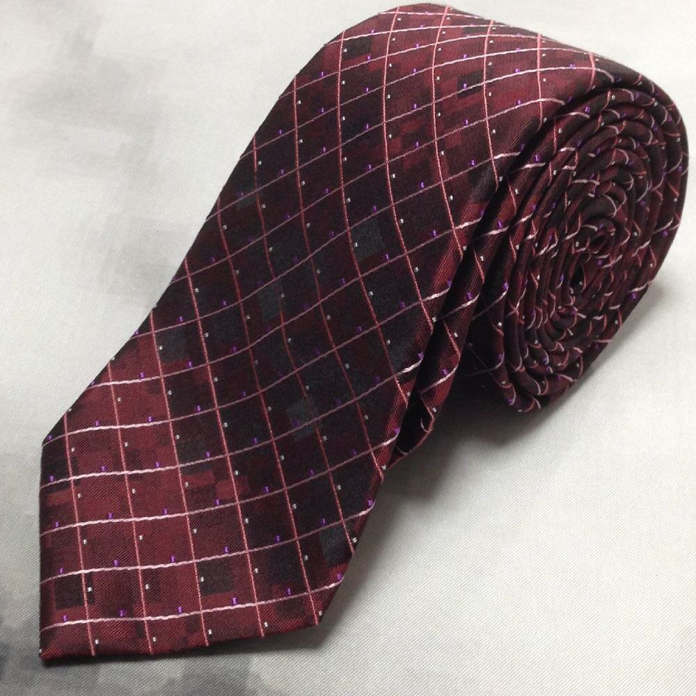 アーヴェーヴェー a.v.v 美品 微光沢 ネクタイ シルク100% ナロータイ ワインレッド系 赤系 A-008322