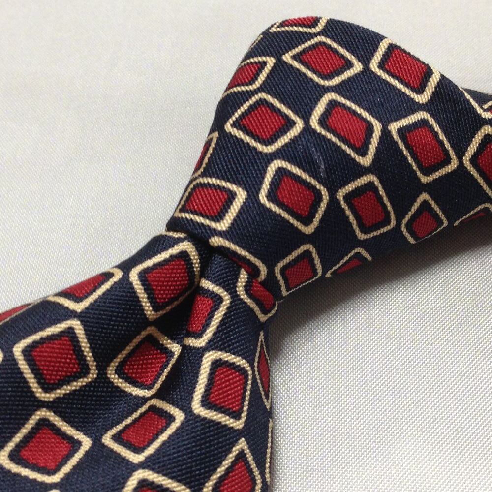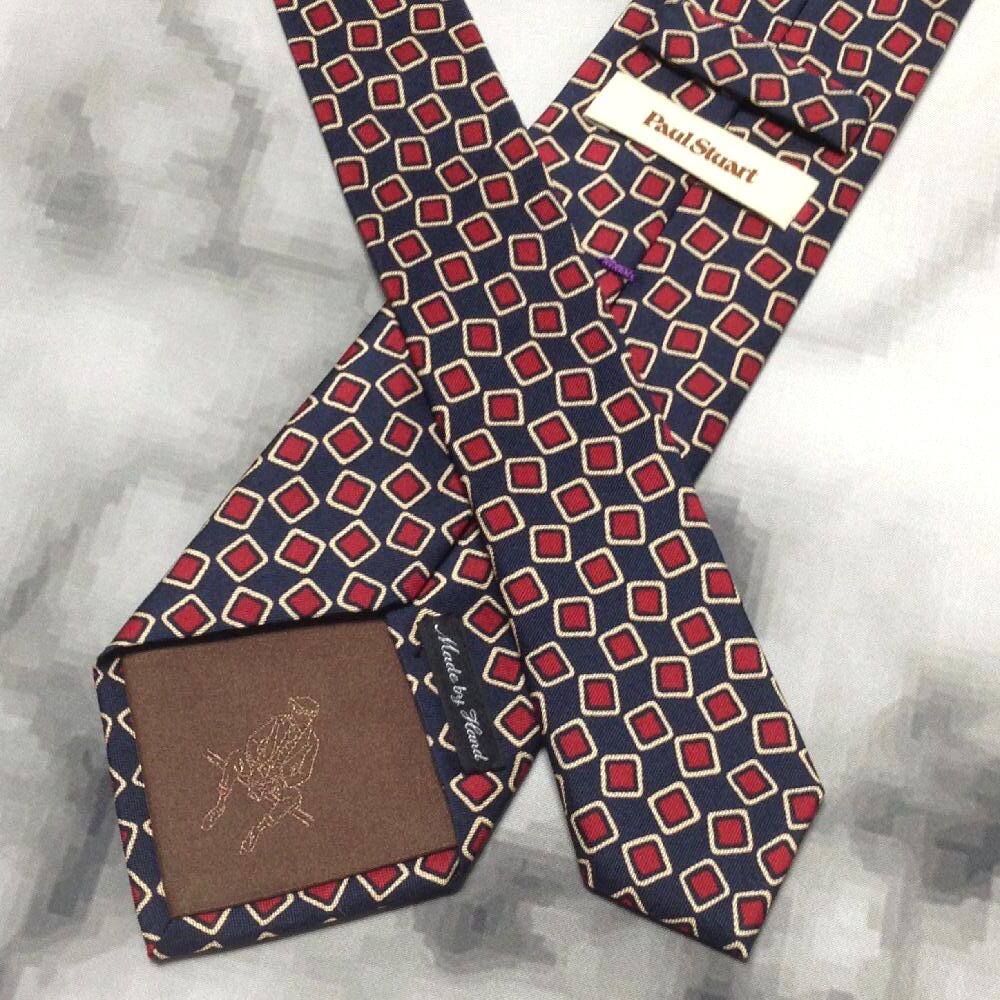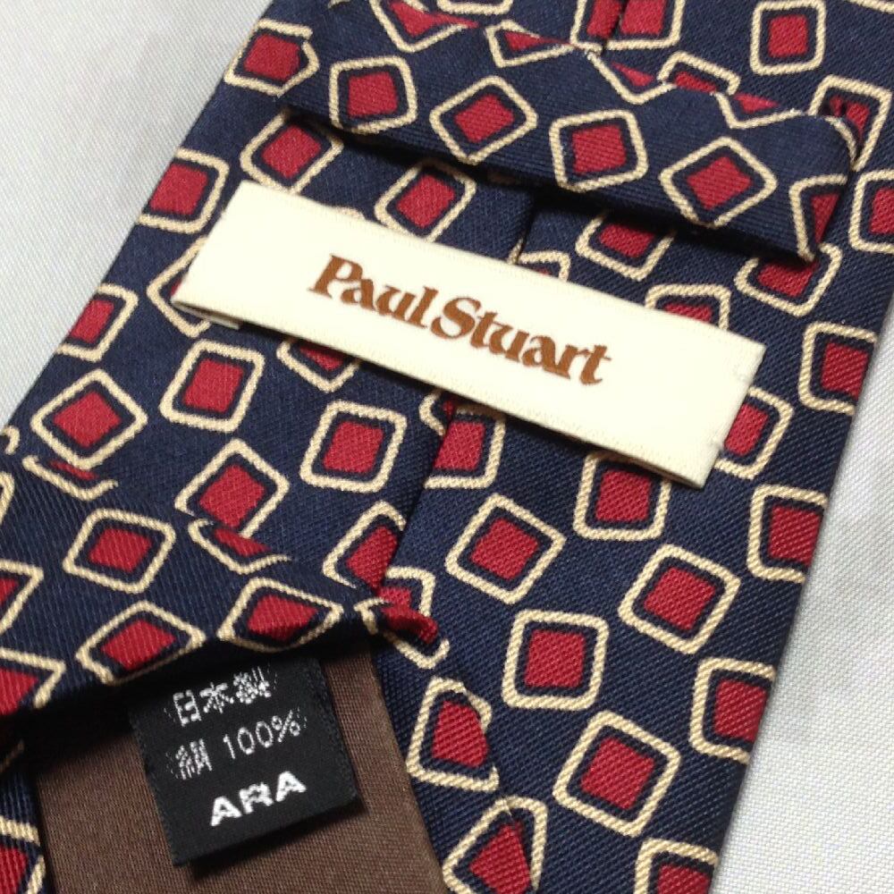 ポール スチュアート Paul Stuart 微光沢 ネクタイ 日本製 シルク100% パターン柄 濃紺系 ネイビー系 A-008337