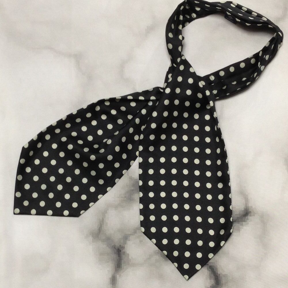 クリケット CRICKET 美品 微光沢 ネクタイ 日本製 シルク100% ドット柄 アスコット タイ 黒系 ブラック系 A-008339