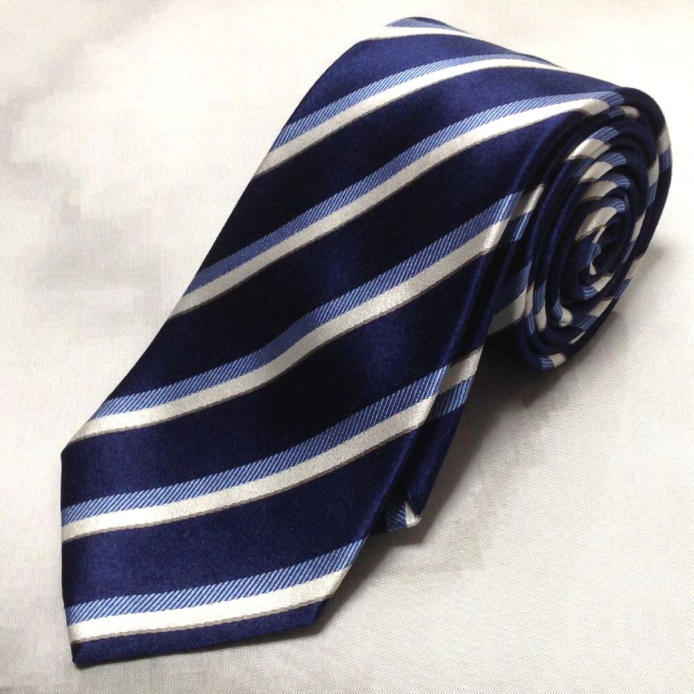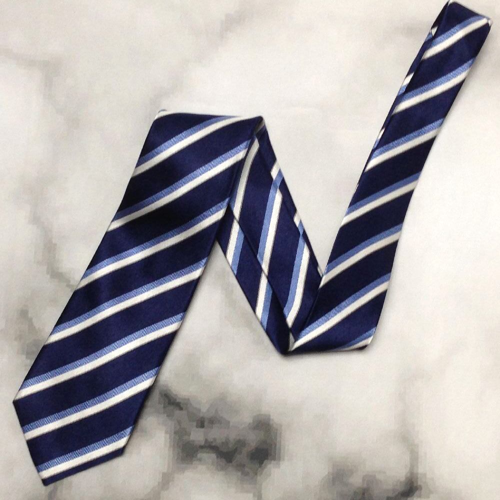 リーガル REGAL 美品 微光沢 ネクタイ シルク100% 斜めストライプ レジメンタル 濃紺系 ネイビー系 A-008346